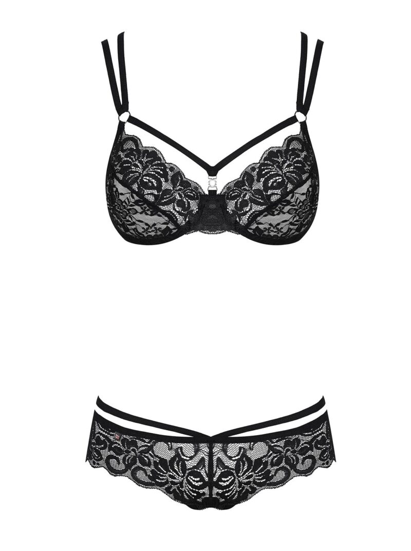 Verleid je partner in deze opvallende 2-delige BH set! De set bestaat uit een BH met ongevoerde cups en een bijpassende sexy string. De dubbele schouderbandjes zijn ruim verstelbaar. Deze set heeft prachtige kanten details en een speelse belijning. Het materiaal is elastisch voor een mooie pasvorm.