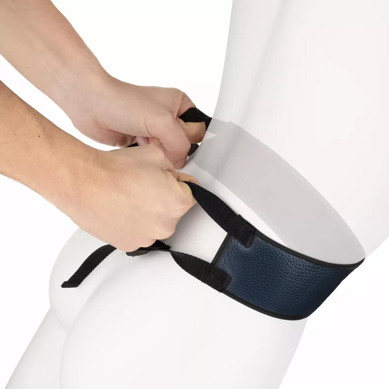 De cuff is gemaakt met een zachte binnenzijde die prettig aanvoelt op de huid, zodat je zonder afleiding kunt focussen op de ervaring. De buitenzijde is robuust en ondersteunt het gevoel van gecontroleerde fixatie. De verstelbare band zorgt ervoor dat je altijd de juiste pasvorm kunt creëren, passend bij de spanning die je samen wilt opbouwen.