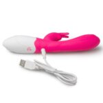 Ga voor een volledige stimulatie met deze leuke rabbit vibrator uit de EasyToys collectie. Hij heeft twee motoren, een in de top en een in de clitorisstimulator, zodat de vibraties goed verdeeld worden over de hele vibrator. Het schattige konijntje kietelt je clitoris met zijn oortjes, terwijl de gebogen top je G-spot verwent. Kies een van de 10 vibratiessterktes of -patronen en laat de vibraties naar jouw gevoeligste plekjes gaan. Het siliconen materiaal voelt heerlijk zacht en glad aan en zorgt voor een comfortabel gebruik. Na gebruik kun je de vibrator eenvoudig en snel opladen met de bijgeleverde USB-kabel.