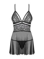 Deze babydoll is gemaakt van een doorzichtige stof met kanten details met dunne bandjes. Het heeft daarnaast een mooie rok en een bijpassende string. De babydoll is comfortabel te dragen.