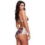 De Baci Lingerie GREY FLORAL & LACE Bh-Set combineert een vintage uitstraling met moderne sensualiteit. De bralette heeft een verfijnd bandjesdesign en wordt afgewerkt met een brede strook contrasterend wit kant. Het bijpassende high-waist broekje met cheeky achterkant sluit perfect aan en is voorzien van delicate kanten details die je vrouwelijke vormen accentueren. Deze set uit de Baci White Label Collection belichaamt de balans tussen speels en verleidelijk. Draag hem onder je dagelijkse outfit om je zelfvertrouwen een boost te geven, of laat hem stukje bij beetje verleidelijk uittrekken tijdens intieme momenten. Met deze set voel je je zowel stijlvol als onweerstaanbaar.