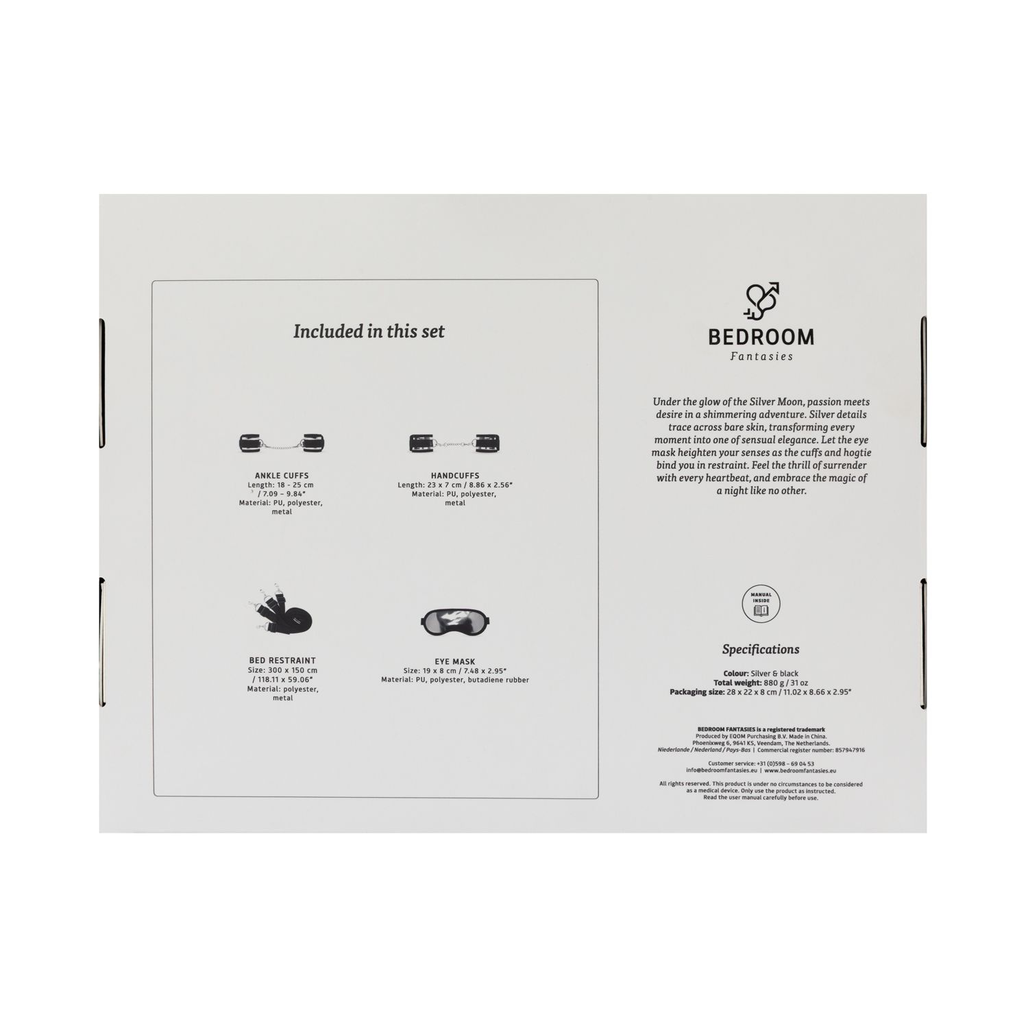 Laat nieuwsgierigheid en spanning samenkomen met Bedroom Fantasies Silver Moon, een complete set die is ontworpen om intieme momenten op een speelse en toegankelijke manier te verdiepen. Deze zorgvuldig samengestelde collectie nodigt uit tot ontdekken, vertragen en het creëren van een mysterieuze sfeer waarin aandacht voor elkaar centraal staat.