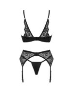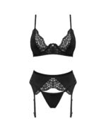 In deze 3-delige set zal jij zeker opvallen! De set bestaat uit een beugel bh, een sensuele jarretelgordel en een bijpassende sexy string. De set accentueert je figuur en heeft een hoog draagcomfort. Combineer met andere Bellastia items en voel je onweerstaanbaar!