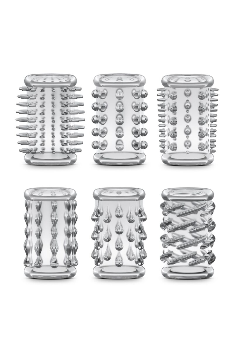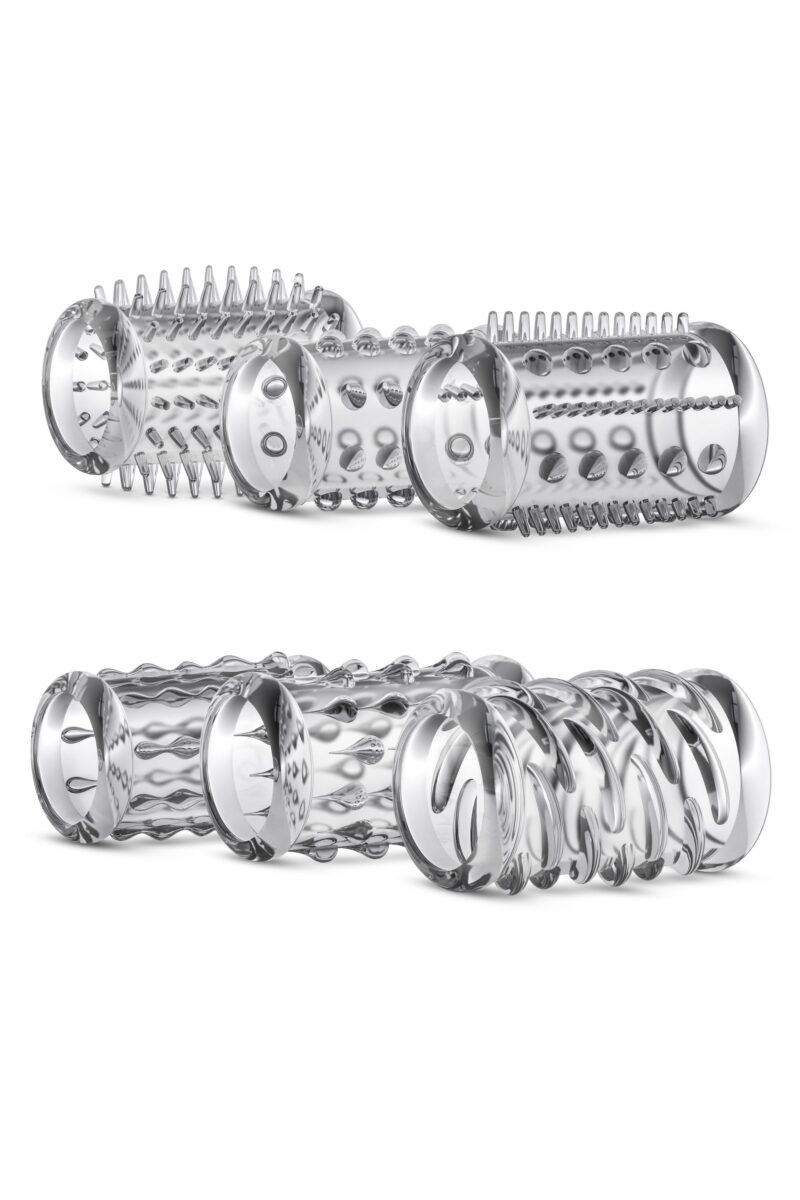 Ontdek een wereld van nieuwe sensaties met de Stay Hard Cock Sleeve Kit van Blush. Deze transparante sleeves zijn ontworpen om je penis of favoriete dildo te voorzien van extra stimulatie, dankzij zes unieke structuren die elk contact spannend en anders maken.
