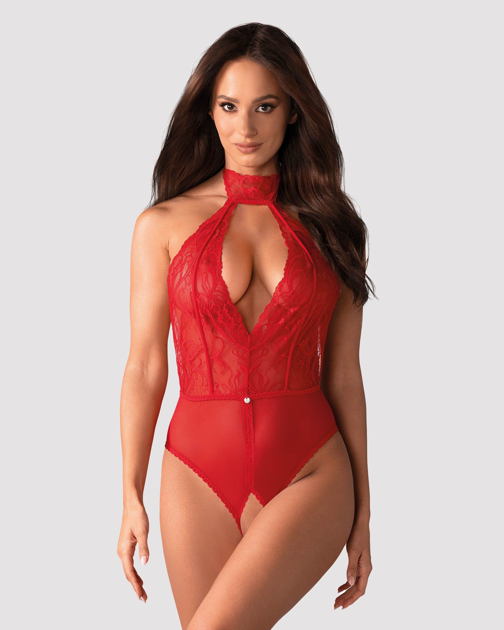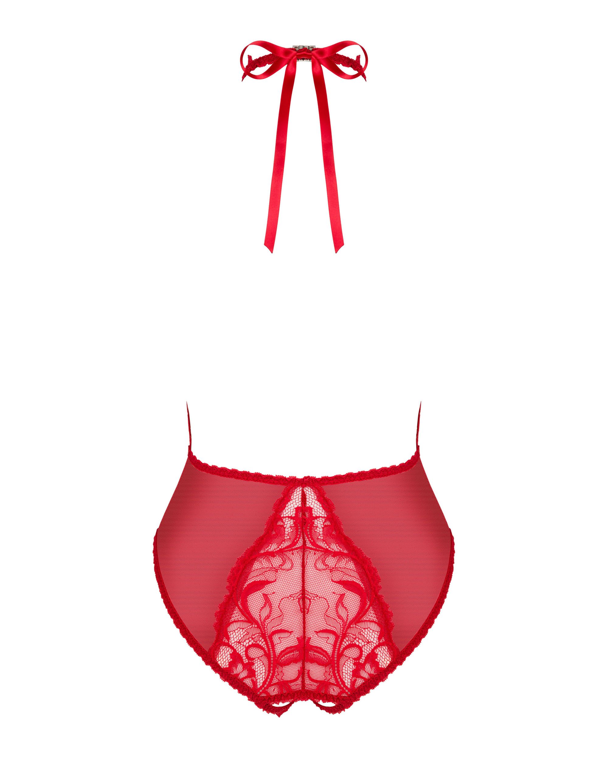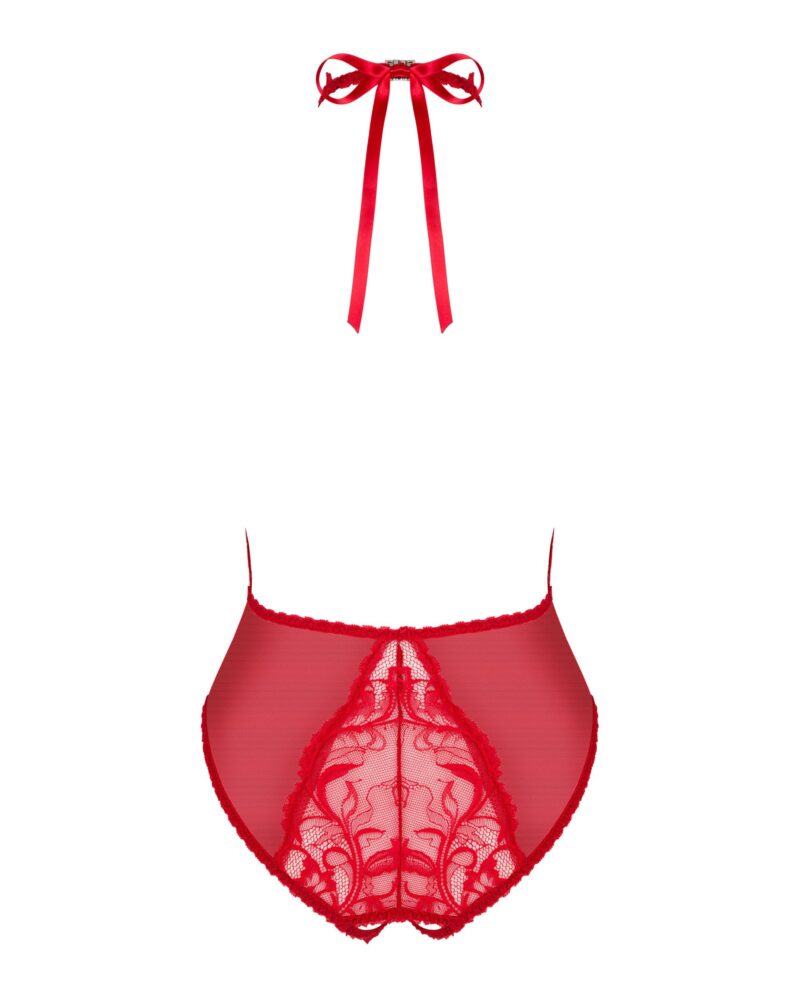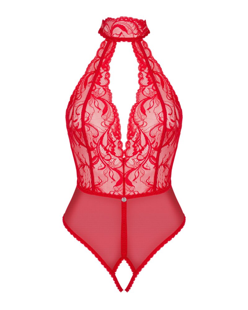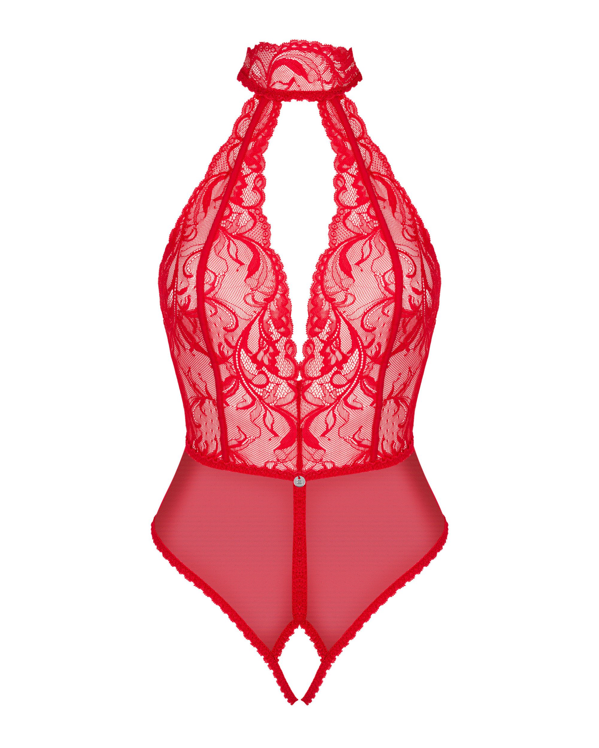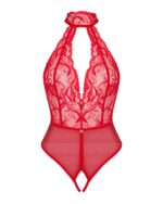 Merk: Obsessive. De Dagmarie kanten body verleidt jouw zintuigen, het is een vurig rood dat jouw geliefde zal betoveren. Het diepe decolleté en de open rug laten je meest sexy delen zien en benadrukken. Het open kruisje moedigt je brandende verlangens aan en stimuleert je fantasie.