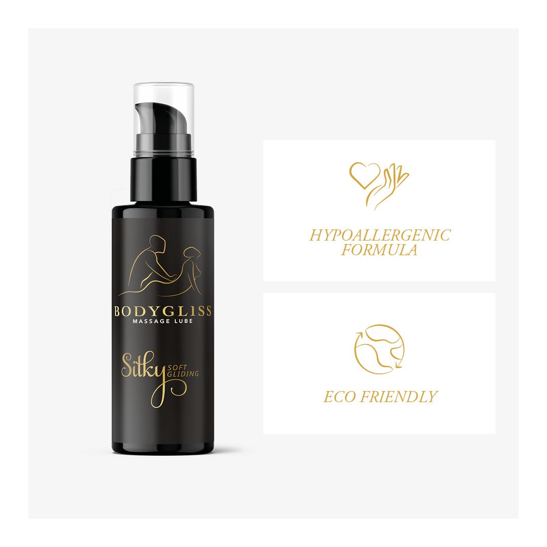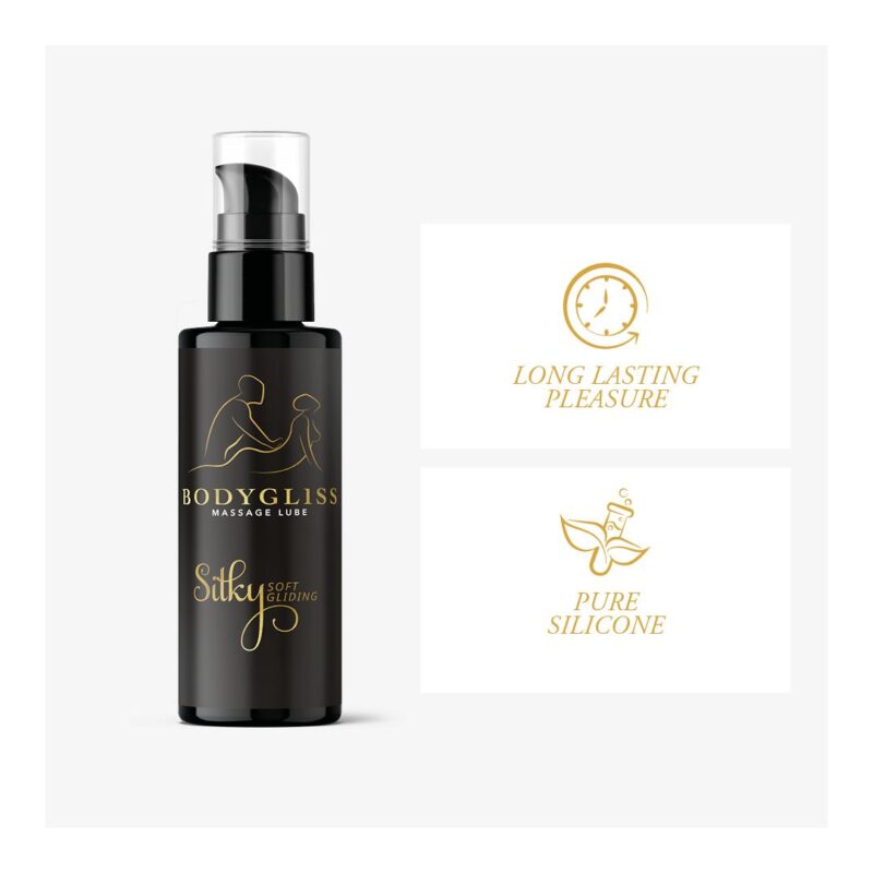 Beleef nog meer gladheid en opwinding met de BodyGliss Silky Soft Gliding glijmiddel op siliconenbasis. BodyGliss gebruikt de hoogwaardige pure variant dimethicone silicone olie in een hoog percentage wat een perfect glijdend vermogen geeft. Geniet van een heerlijk sensueel gevoel en gebruik dit glijmiddel waar je maar wilt. Het glijmiddel is geurloos en vrij van hormonen. Dankzij het hygiënisch pompsysteem heb je altijd de gewenste hoeveelheid.