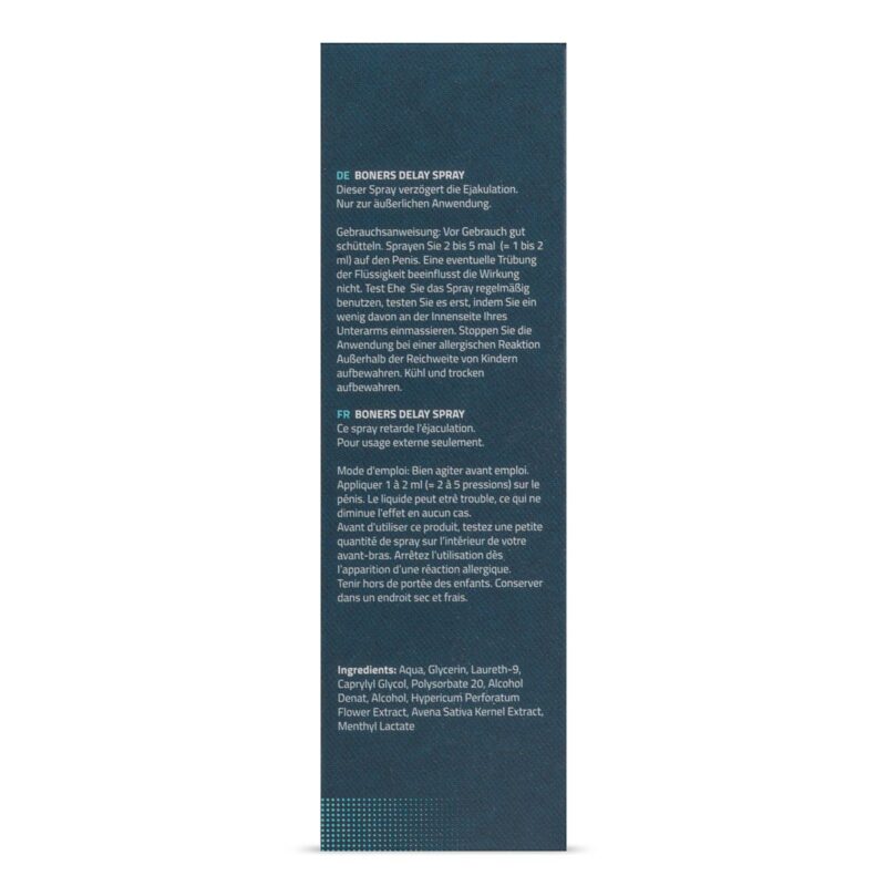 Boners Orgasmevertragende Spray stelt het orgasme uit waardoor jij langer geniet. Het helpt bij overgevoeligheid en kan teleurstellingen tussen de lakens voorkomen. Het kleine flesje heeft een discreet design en is eenvoudig in gebruik.
