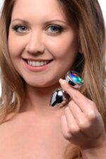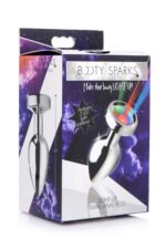 Breng letterlijk licht in je nacht met de BOOTY SPARKS Light Up Anaalplug. Deze stijlvolle plug is gemaakt van glad, nikkelvrij aluminiumlegering en heeft een taps toelopende vorm die gemakkelijk in te brengen is – ideaal voor zowel beginners als gevorderden. De small plug is voorzien van een LED-schijf met drie verlichtingsstanden: langzaam, gemiddeld en snel knipperend. Perfect voor feestjes, rollenspel of als speelse verrassing wanneer de lichten uitgaan.