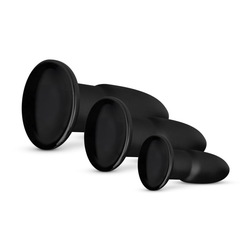 Heb je wat nodig is om je een weg te banen naar de grootste plug? Deze anale trainingsset is de volgende stap op je anale verkenningstocht. De set van drie pluggen stelt je in staat om geleidelijk nieuwe diepten en formaten te ervaren. Het gladde oppervlak en de afgeronde punt van elke butt plug zorgen voor maximaal comfort tijdens het inbrengen. Met een lengte van 15-19 cm en een breedte van 4,5 – 5,8 cm is dit butt plug trio ontworpen om je te trainen en te stretchen voor toekomstige avonturen.