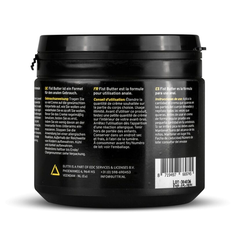 BUTTR Fisting Butter is onmisbaar voor de liefhebbers van fisting. Fisting butter is een extreem glad, dik anaal glijmiddel dat de penetratie versoepelt. Het is zacht voor de huid, blijft lang glad en is vrij van parfums. De grote pot maakt het pakken van extra glijmiddel eenvoudig waardoor jij je enkel hoeft te focussen op plezier.