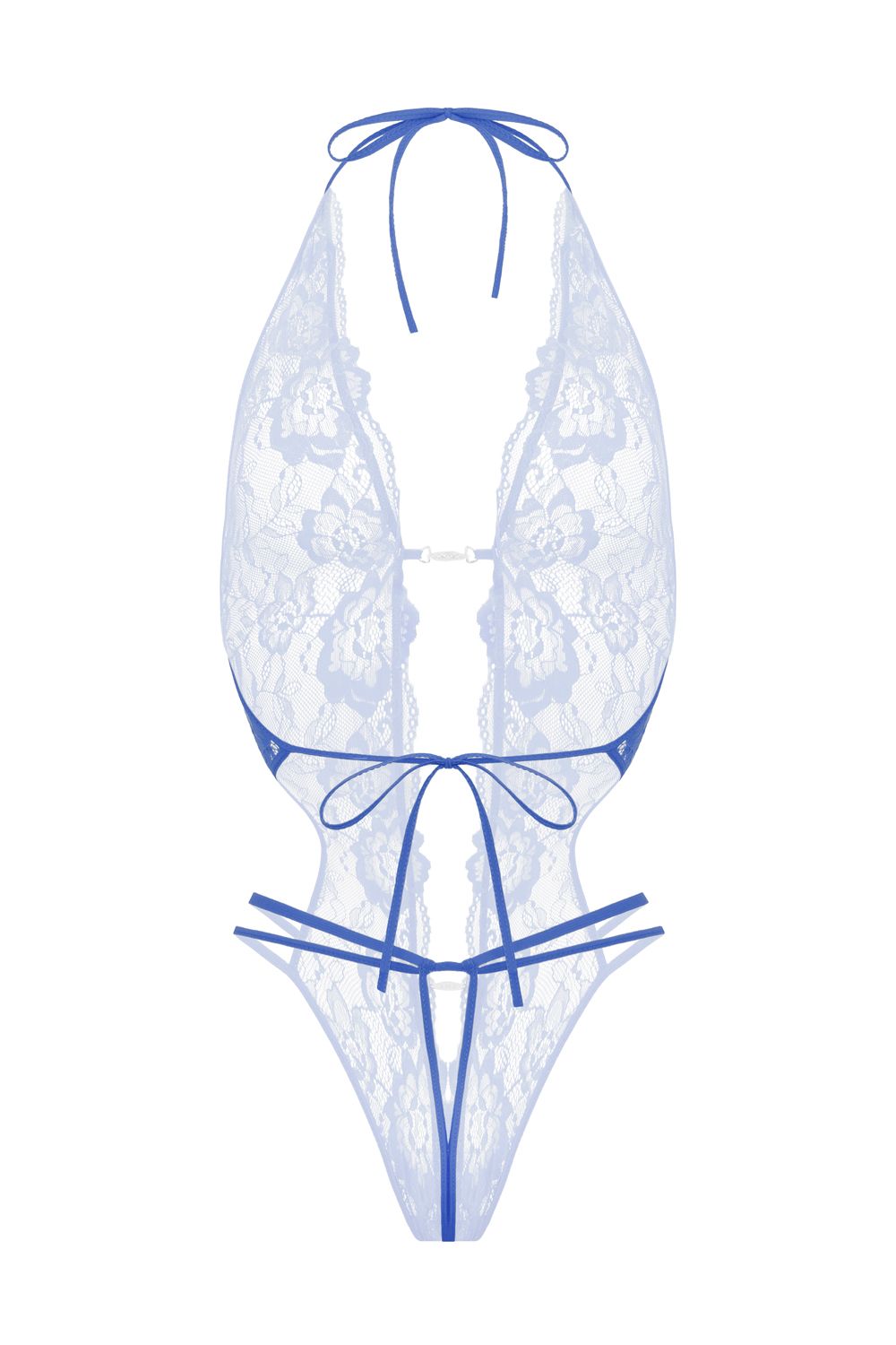 Onze topper body Renee nu in een nieuwe kleur, magisch blauw. Om het extra spannend te maken heeft Body Renee een open kruisje. De body sluit met een bandje in de nek en op de rug heeft hij meerdere elastische bandjes. De voorkant wordt bovenaan en onder de borst bijeen gehouden met een stras juweel.