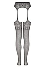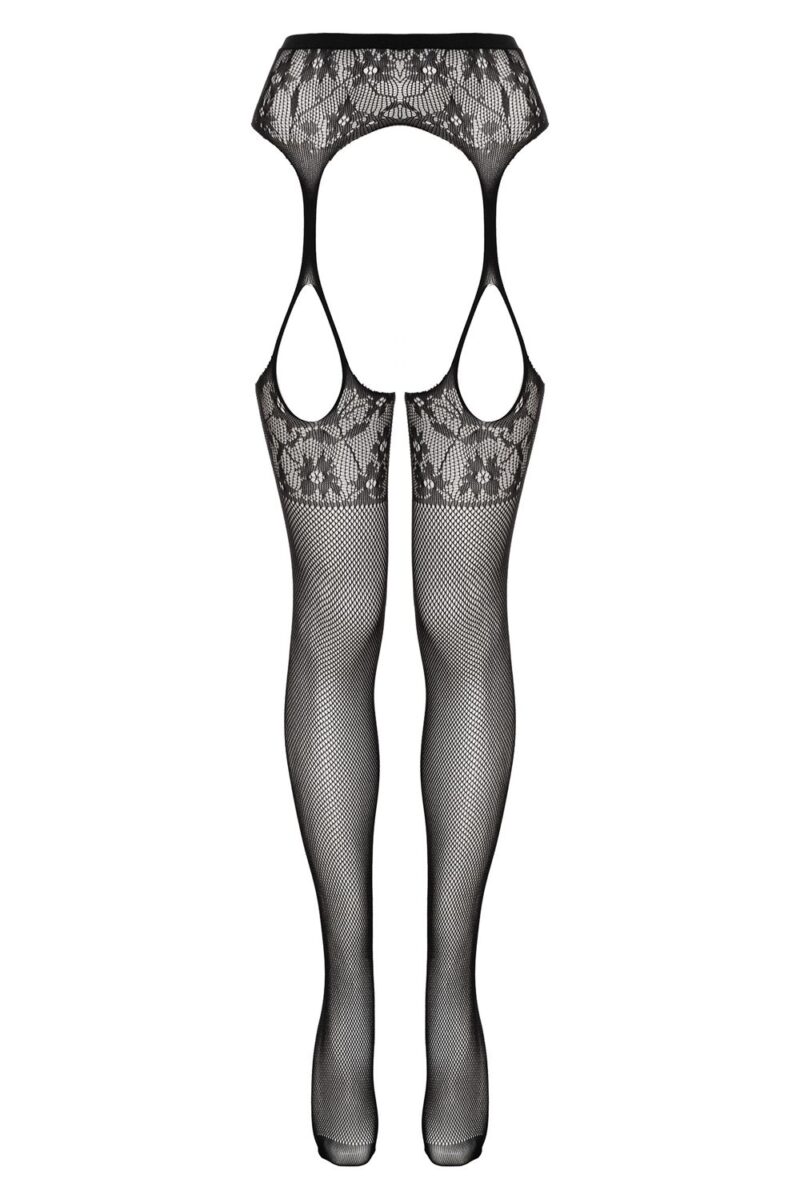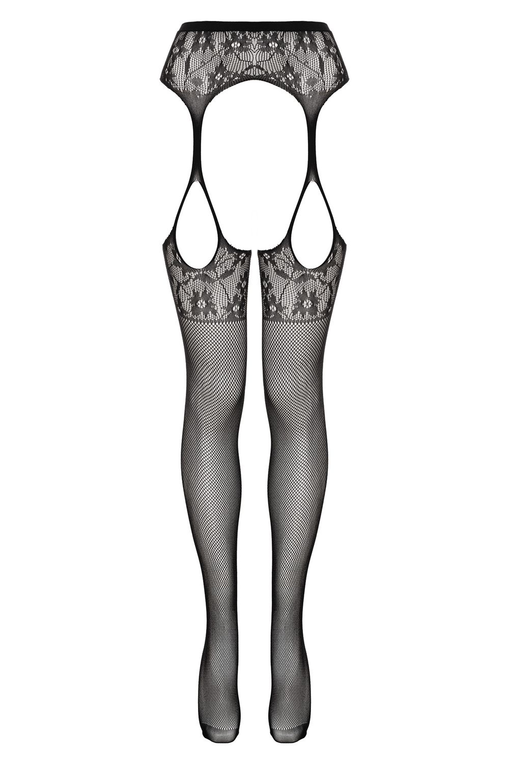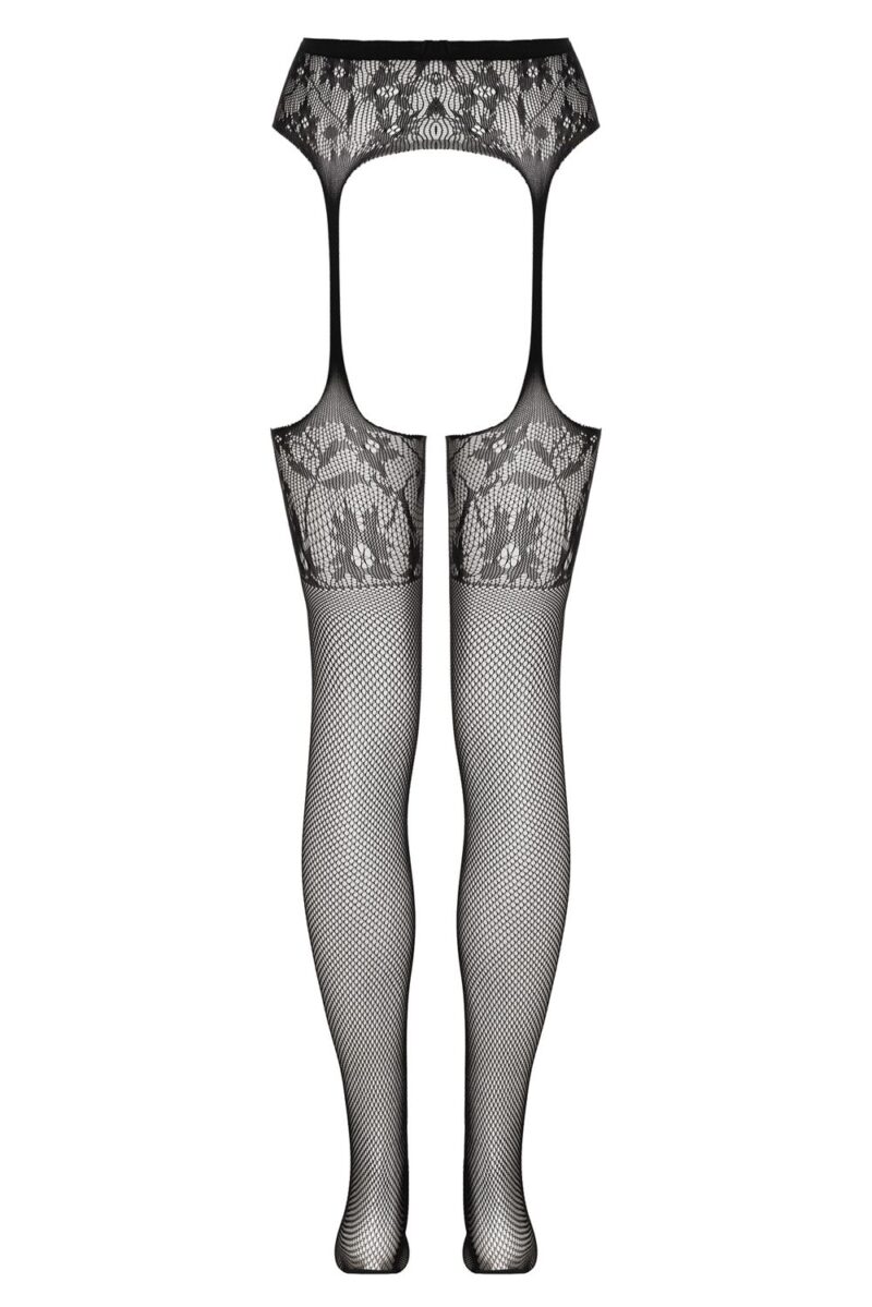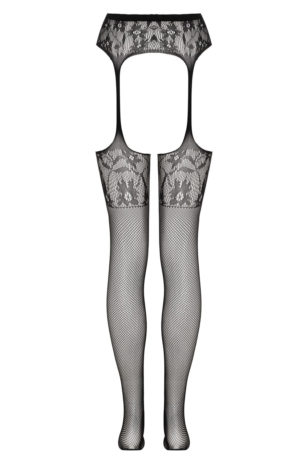 Panty gemaakt van fijn net-materiaal, met kanten accenten en een vastzittende jarretelgordel in kant-optiek. Gemaakt van een super elastische kwaliteit, hierdoor heeft de panty een ruim pasbereik. Mooie pasvorm.