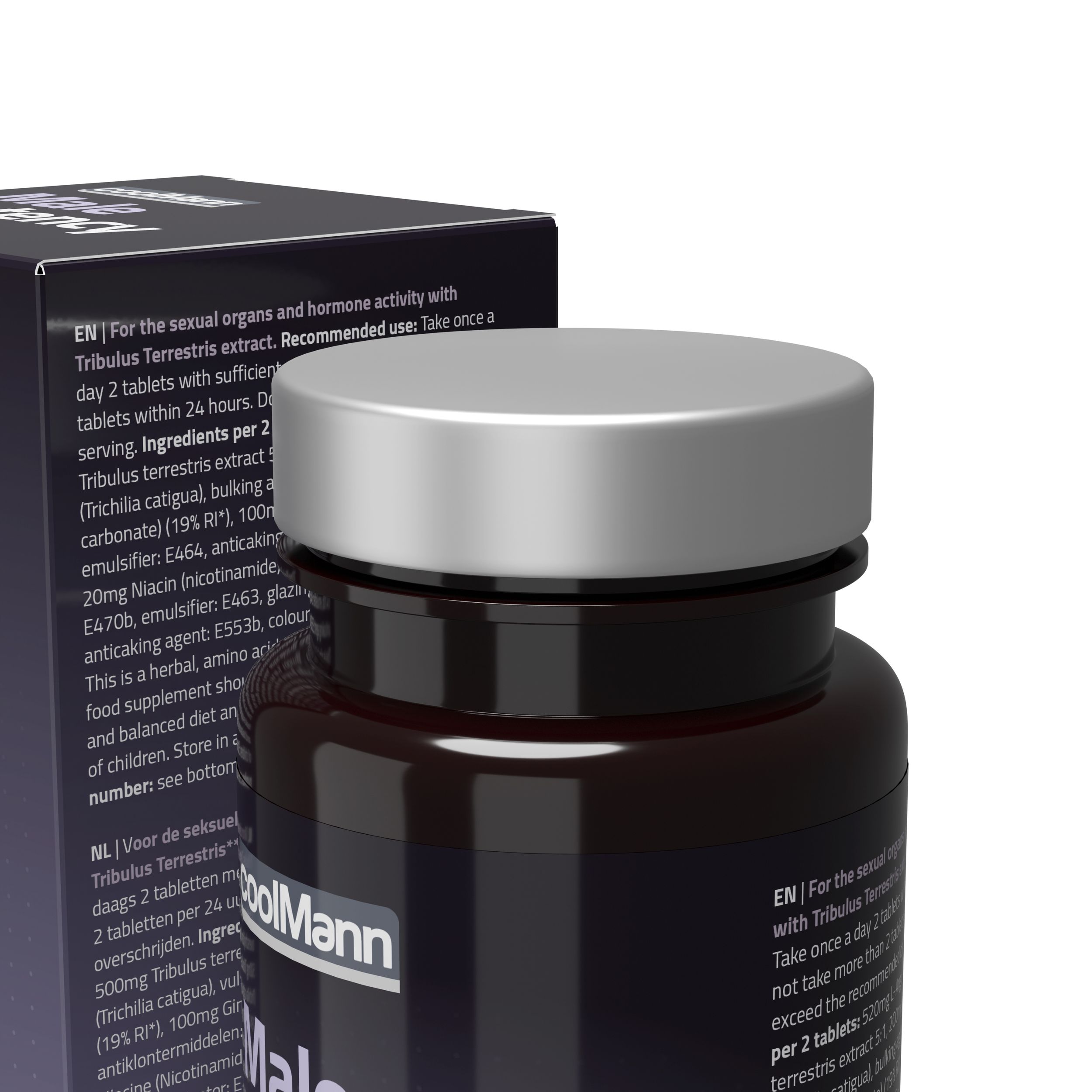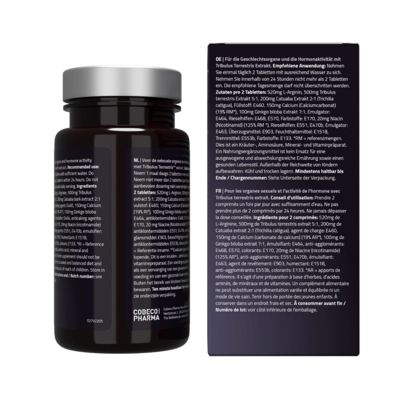 Ingrediënten per 2 tabletten: 520 mg L-Arginine, vulstof: E460, 200 mg Catuaba extract 2:1 (Trichilia catigua), 150 mg Calcium (Calciumcarbonaat) (19% ADH*), 100 mg Ginkgo biloba extract 50:1, 100 mg Tribulus terrestris extract 6:1, antiklontermiddelen: E468, E570, 20 mg Niacine (Nicotinamide) (125% ADH*), antiklontermiddelen: E551, E470b, emulgator: E464, bevochtigingsmiddel: E1518, kleurstof: E171, kleurstof: E133.