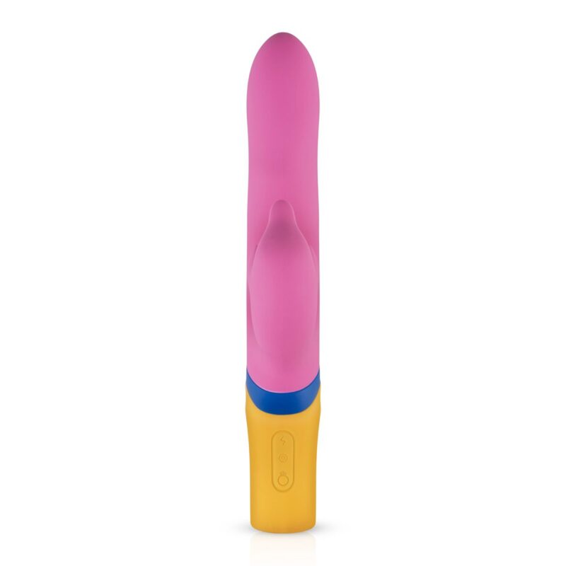 Mismatch of niet, Copy is een kleurrijke verschijning tussen de Dolphin Vibrators! Deze krachtpatser heeft maar liefst 3 sterke motoren, 12 rotatiestanden en 13 vibratiestanden. Het prikkelt al je zintuigen met zijn looks en kunnen. Stimuleer met Copy je G-spot en clitoris tegelijkertijd en geniet van het fijne gevoel van de roterende functie. Daarnaast kun je de vibraties en roaties ook apart van elkaar uitschakelen en bedienen. Laat elke regel los en laat je kleuren barsten! Copy is op te laden met een eveneens kleurrijke USB-kabel. Maak na gebruik de Dolphin Vibrator schoon met lauwwarm water en toycleaner.