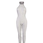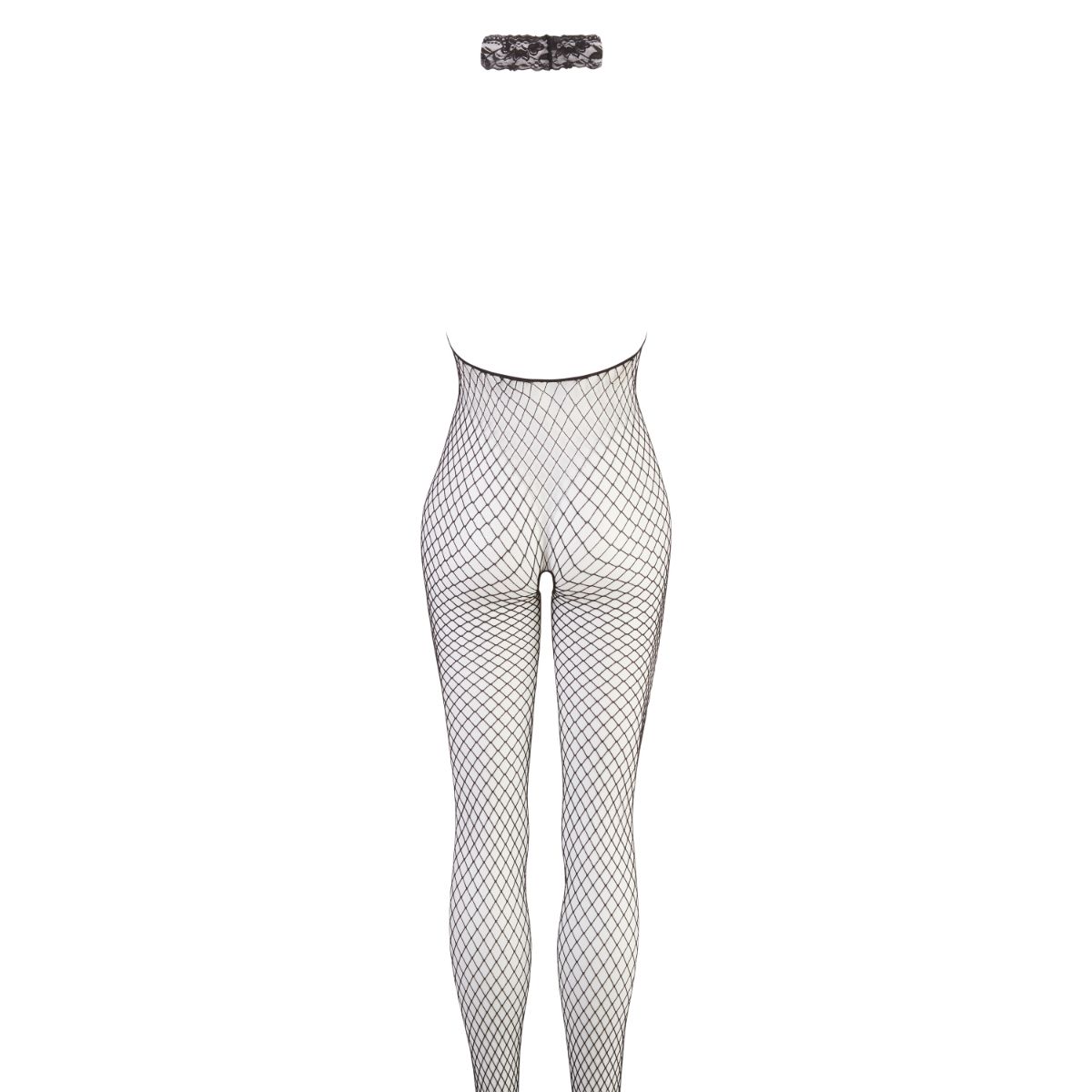 Doorschijnende visnet catsuit in een modieus haltermodel. Deze zwarte variant heeft een prachtige halsband van zacht zwart kant voor een luxe vrouwelijke uitstraling. Laat je lichaam zien in deze sexy lingerie! De catsuit loopt door tot en met de voeten en heeft een spannend open kruisje. De elastische pasvorm zorgt een verleidelijke look en optimaal draagcomfort in elke situatie.