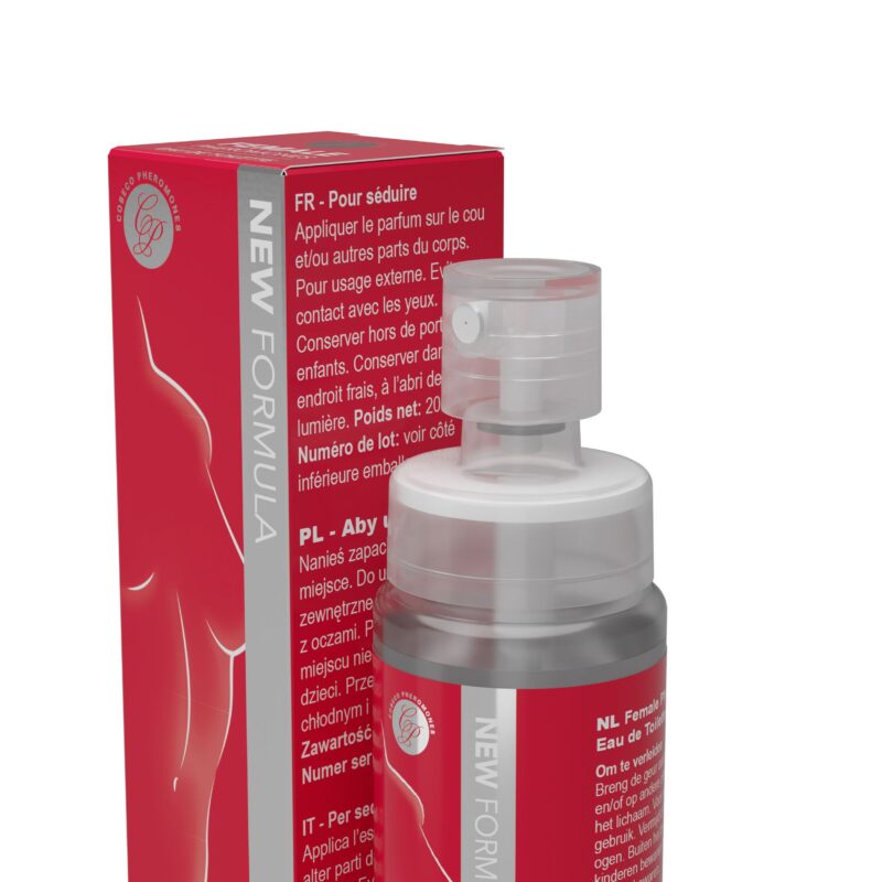 Dames Eau de Toilette Female Pheromones zorgen voor een onzichtbare aantrekkingskracht. Deze Eau de Toilette is speciaal voor vrouwen die hun aantrekkingskracht positief willen beïnvloeden. De Eau de Toilette is voor dagelijks gebruik en het bevat een natuurlijke lokstof dat het verleiden en flirten verbeterd. Het stofje stimuleert natuurlijk verlangen, versterkt de sensualiteit en draagt bij aan een positieve gemoedstoestand. De geur van deze Eau de Toilette komt overeen met natuurlijke erotische geuren die een lichamelijk opwekkend effect hebben. Door de lichaamsgeur van iemand krijgen we, vaak onbewust, een speciaal gevoel voor die persoon. Door deze dames Eau de Toilette te gebruiken verspreid je een zoete en verfijnde lucht. Precies de geur wat mannen aantrekt.