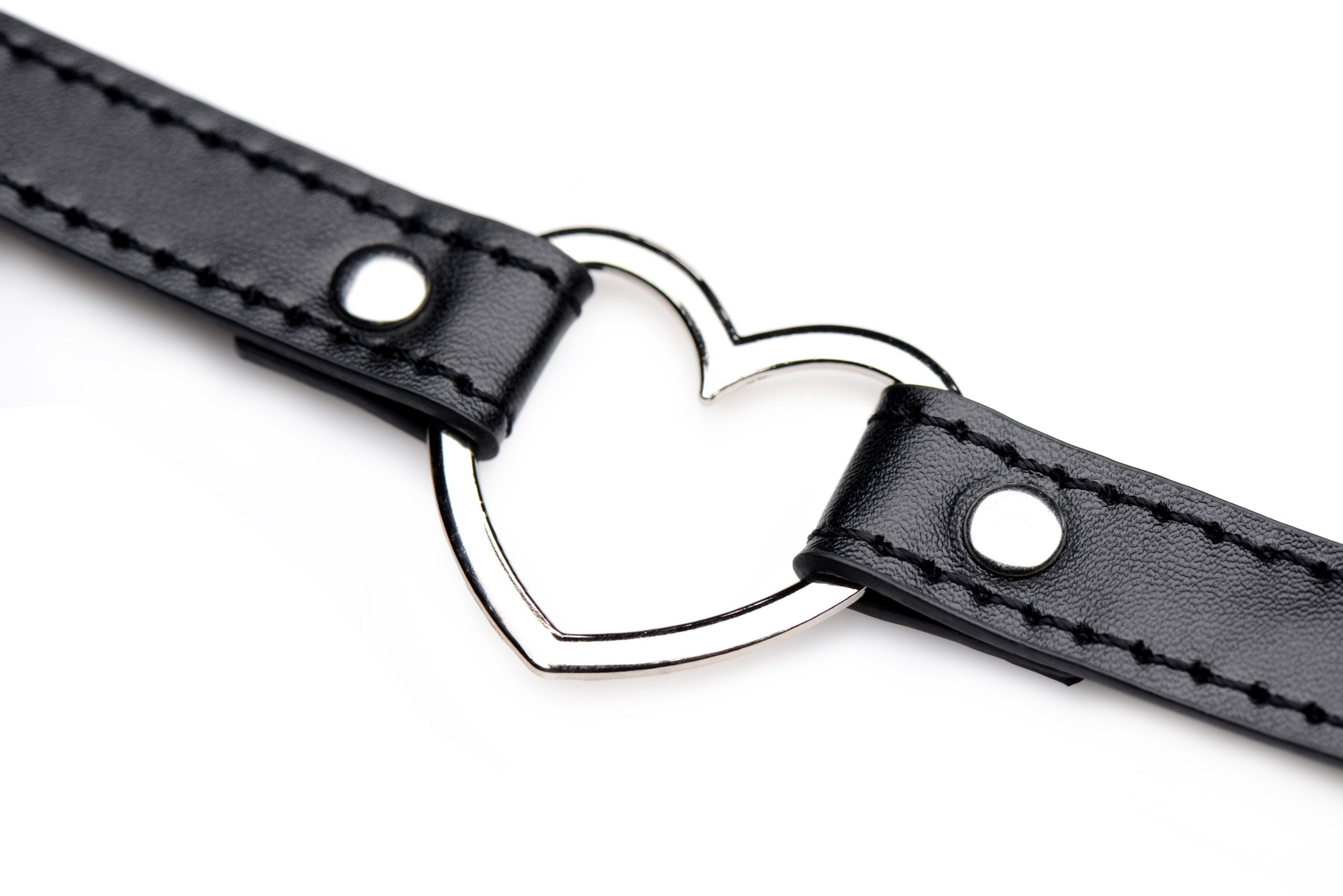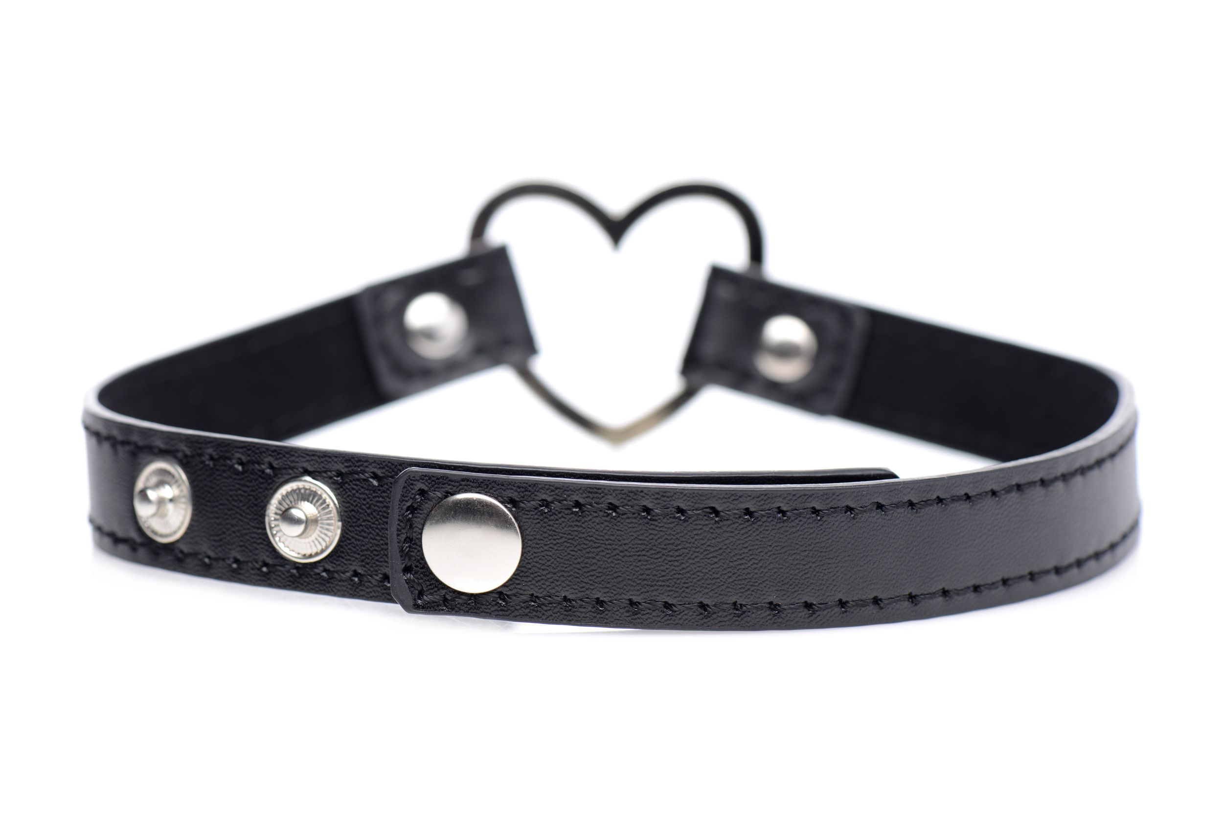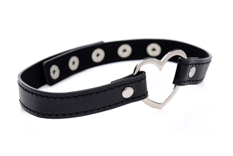 De Dark Heart Choker is perfect voor een spannende avond uit of thuis. Het heeft een groot chromen hart aan de voorzijde en is aan de achterzijde te sluiten met handige drukknopen. De maximale omtrek is 44 cm en de minimale 34 cm. Het accessoire is gemaakt van zacht materiaal en voelt comfortabel aan.