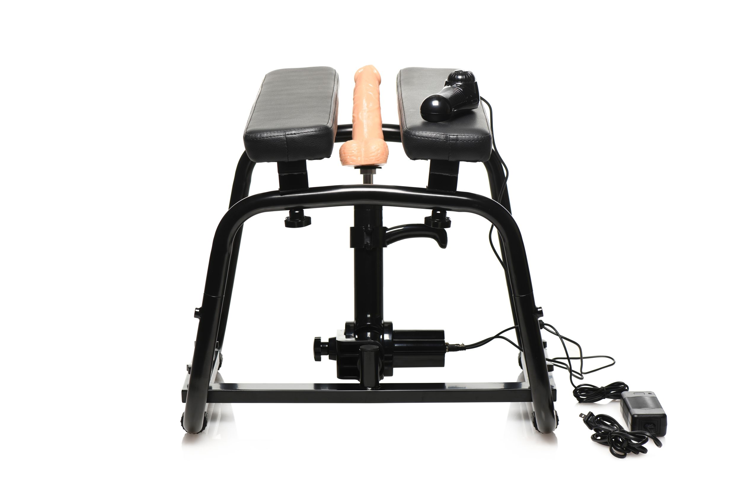 De keuze is reuze met deze uitgebreide sexmachine van Lovebotz! De machine is eenvoudig te bedienen met de draaiknop op de afstandsbediening. Op de hardste stand behaal je maximaal 195 stoten per minuut! De realistische dildo is tevens los te gebruiken en is voorzien van een stevige kern en een zachte buitenzijde. Dankzij de aders en realistische eikel voelt hij aan als de real deal. De stoel is voorzien van 2 elastische riemen zodat je comfortabel blijft zitten zonder te verschuiven. De seksmachine kan worden gedemonteerd en afzonderlijk worden gebruikt. Ervaar de Deluxe Bangin’ Bench alleen voor een spannende solo sekssessie of samen met je partner voor een onvergetelijke orale ervaring.