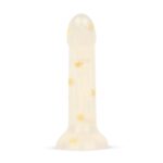 Deze gladde jelly dildo met gouden bloemen maakt elk moment net wat leuker. De sterke zuignap zorgt ervoor dat je hem handsfree kunt gebruiken, zodat je in elke positie kunt genieten die jij fijn vindt. Met een klassieke vorm en schattige bloemendetails is hij ontworpen voor geweldige interne stimulatie dankzij de smal toelopende top. Of je nu een beginner bent of al ervaring hebt, deze kleinere dildo past perfect in elke collectie. Gebruik hem vaginaal of anaal, solo of samen met een partner – je kunt hem zelfs combineren met een harnas voor extra variatie. Pak je favoriete glijmiddel op waterbasis erbij en ontdek je nieuwe favoriet!