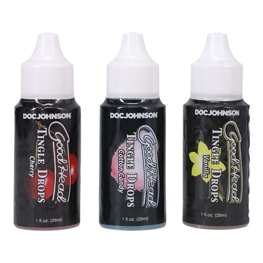 Tintelende, verleidelijke sensaties en drie heerlijke smaken verbeteren je orale spel in deze drie-delige set van GoodHead Tingle Drops. De smaken van zachte Franse vanille, zoete suikerspin en zoete kers zijn verpakt in flessen van 29 ml met een pipet, van deze orale seksondersteuners die zijn geformuleerd om een koele, tintelende sensatie te creëren bij contact.