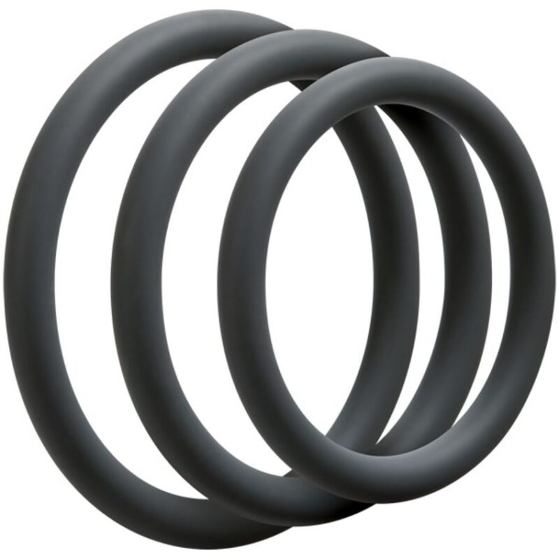 Geef je avonturen een flinke upgrade met de OptiMALE Thin C-Ring set. Dit trio van dunne, flexibele ringen is ontworpen om je prestaties naar een hoger niveau te tillen en je te laten genieten van langdurige, krachtige sensaties. Het zachte, rekbare siliconen sluit zich perfect om je schacht of testikels en helpt je om die indrukwekkende erecties vast te houden tot het moment suprême.
