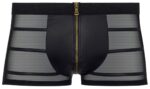 In deze sexy boxer weet je zeker dat je billen volledig tot hun recht komen. De zwarte boxer is gemaakt van doorschijnend materiaal en heeft een wetlook voorkant. Deze is voorzien van een rits met daarachter bescherming zodat het niet tegen het lichaam schuurt. Draag het met sexy kleding of gewoon zo en voel je klaar voor elk avontuur!