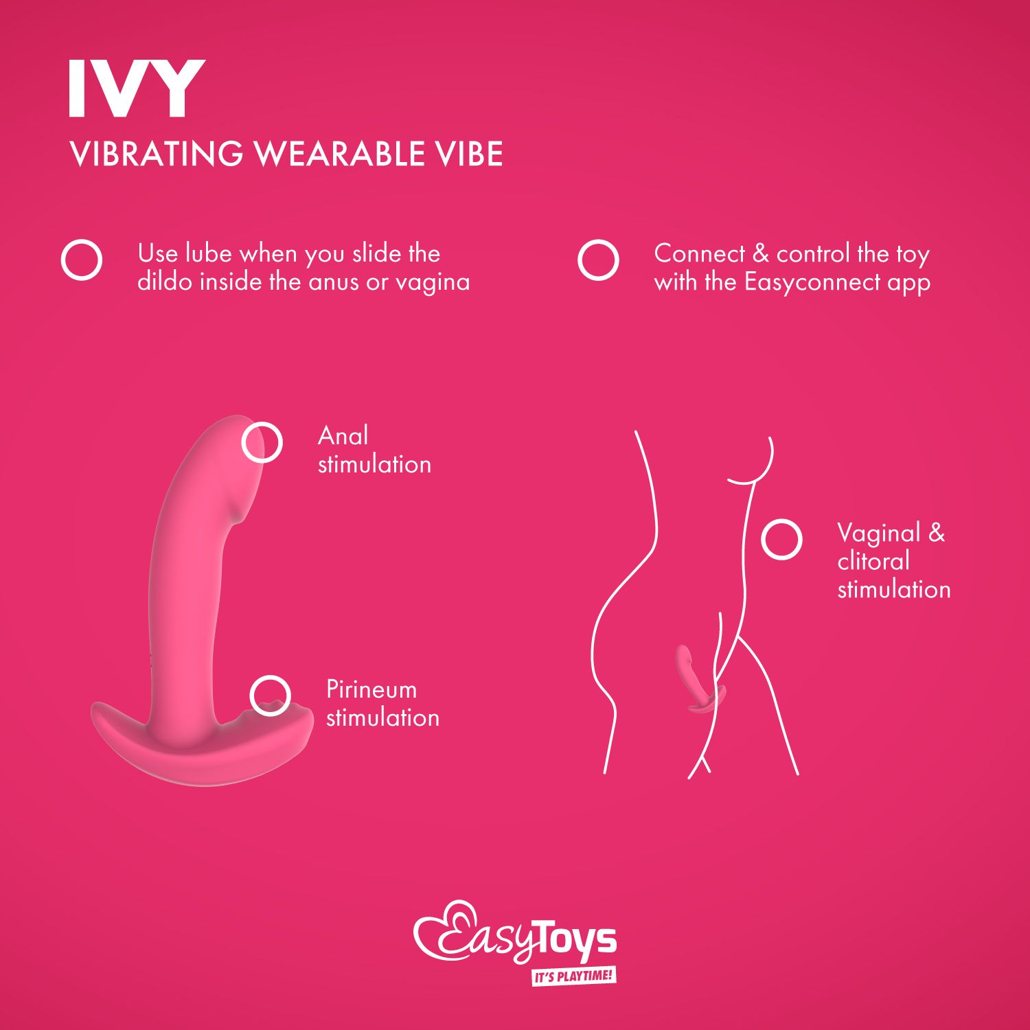 Ontdek de veelzijdigheid van de Draagbare Vibrator Ivy, een essentieel onderdeel van onze EasyConnect collectie, ontworpen voor dynamisch en discreet plezier. Deze innovatieve roze vibrator is je perfecte partner voor stimulatie van diverse erogene zones, waaronder de anus, perineum, vagina en clitoris.