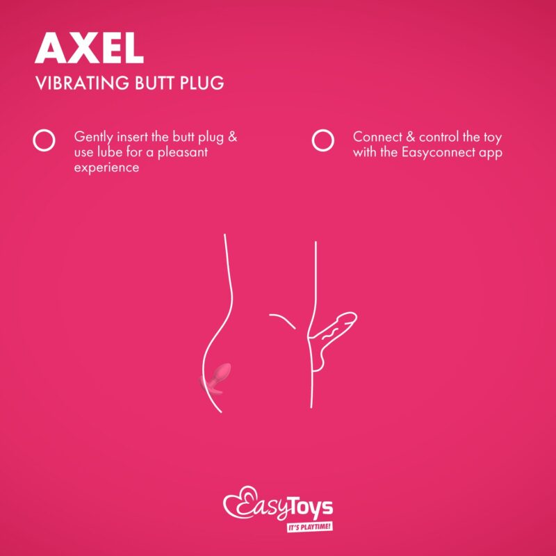 De Vibrerende Buttplug Axel onderscheidt zich door zijn mogelijkheid om te verbinden met de EasyConnect app. Hiermee kun je niet alleen de plug bedienen, maar ook speels experimenteren met langeafstandsspel via de Long Range Play-functie. Stel je voor dat je partner, ongeacht de afstand, controle heeft over de sensaties die de buttplug biedt, een ideale manier om jullie band te versterken, zelfs als jullie niet fysiek samen zijn.