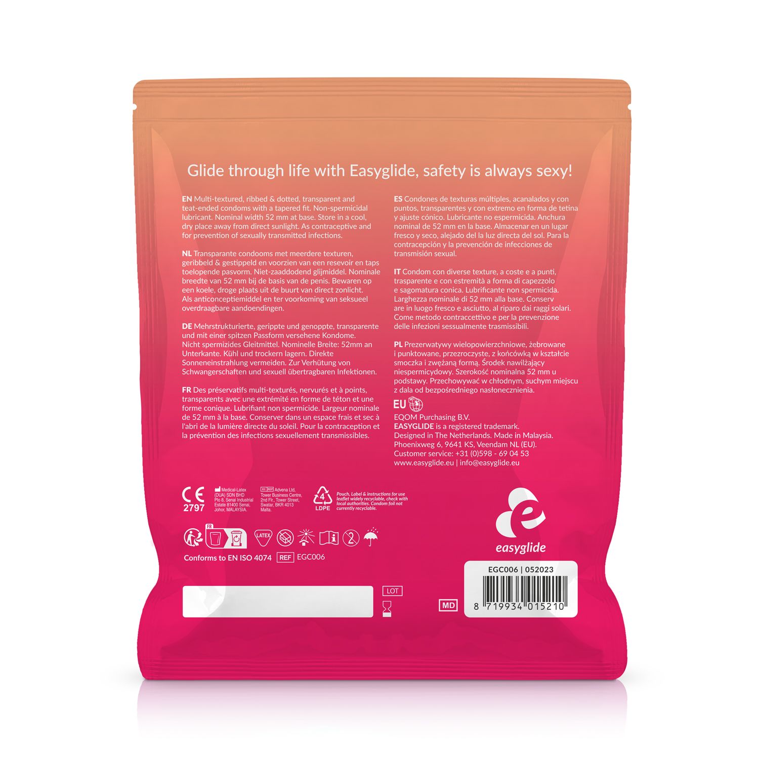 Ervaar natuurlijke sensaties met EasyGlide condooms, de perfecte keuze voor onbezorgd genot! De nieuwe condoomlijn biedt een scala aan opties om aan al jouw wensen te voldoen. Kies voor de Naturel variant als je de ultieme intimiteit wilt ervaren, proef de passie met onze heerlijk gearomatiseerde condooms, ontdek nieuwe sensaties met de geribbelde en genopte versie, of ga voor ultieme gevoeligheid met onze ultra dunne condooms.
