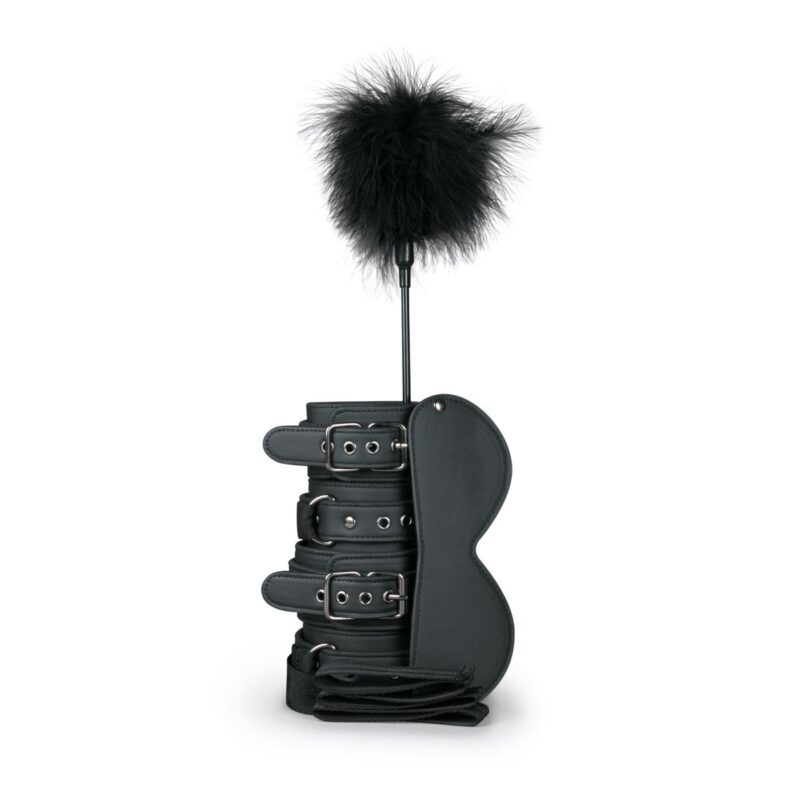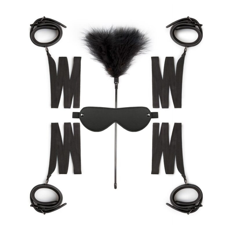 Ben je geïnteresseerd in bondage maar weet je niet waar te beginnen? Dan is de bondage fantasy kit voor beginners de juiste keuze voor jou. Hij introduceert je in de wereld van bondage en je kan je fantasie de vrije loop laten omdat deze set op iedere manier gebruikt kan worden. De set bestaat uit handboeien, enkelboeien, een oogmasker en een kietelaar. De vier boeien hebben bandjes zodat je ze aan elkaar kan vastbinden of aan bedspijlen, stoelen, bondage-harnassen etc. De mogelijkheden zijn eindeloos. Het oogmasker laat geen licht door waardoor andere zintuigen worden geprikkeld en het een spannend bondagespel wordt. Door het elastische bandje is de pasvorm altijd perfect. Gebruik de kietelaar om je partner te plagen en om zenuwuiteinden te stimuleren. Hierdoor wordt de huid nog gevoeliger en voegt het een extra dimensie toe aan je bondagespel.