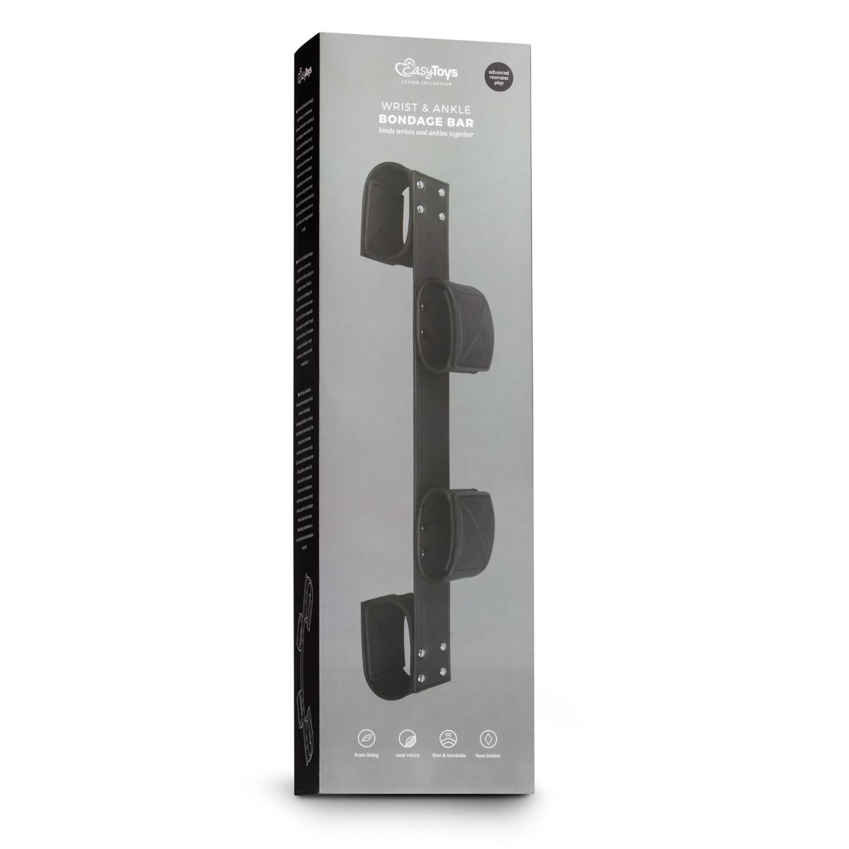 Met deze bondage bar kan je je onderdaan veilig in bedwang houden zolang als je maar wilt. De hand van je onderdaan zit vast aan zijn of haar enkels waardoor ontsnappen onmogelijk is. De boeien zijn gemaakt van sterk kunstleer en gevoerd met schuimrubber voor een comfortabel gebruik. Ze zijn gemakkelijk verstelbaar door de klittenbandsluiting. De bondage bar heeft een elegant design en is gemaakt van duurzame materialen waardoor je er vele keren van kan genieten.