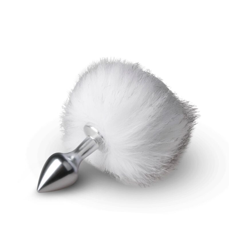 Sexy, zilverkleurige buttplug met wit konijnenstaartje van EasyToys Fetish Collection. De buttplug geeft je een heerlijk vol gevoel terwijl het opwindende konijnenstaartje bij je kont wiebelt. De plug heeft een gladde structuur en een puntige top. Laat de plug in warm of koud water op temperatuur komen en geniet van extra sensatie. De buttplug is perfect om door je partner vaginaal genomen te worden terwijl de plug je anaal verwent. Reinig hem na gebruik hygiënisch met een toycleaner.