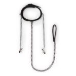 Met deze halsband inclusief tepelklemmen kan je je partner domineren en genieten van het gevoel van controle! De halsband is gemaakt van kunstleer, wat zorgt voor een luxe uitstraling. Hij is verstelbaar en zal dus altijd passen. De halsband en de klemmen zitten aan elkaar vast met metalen kettinkjes. Met deze halsband ben je verzekerd van een opwindend en sexy SM-spelletje.