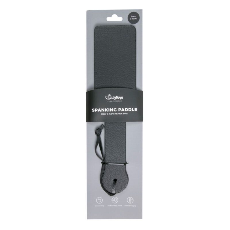Uitdagende, zwarte kunstleren paddle van EasyToys Fetish Collection. Dit zwarte speeltje is essentieel bij een kinky seksspel. Geef je partner een liefdevolle tik of een uitdagende hardere tik. De zwarte stijlvolle paddle is gemaakt van kunstleer. De BDSM paddle is gemakkelijk in het gebruik en door zijn vorm is hij comfortabel om vast te houden. Zo kunnen jullie urenlang genieten van de paddle. Heb jij al een spannend seksspel in gedachte?
