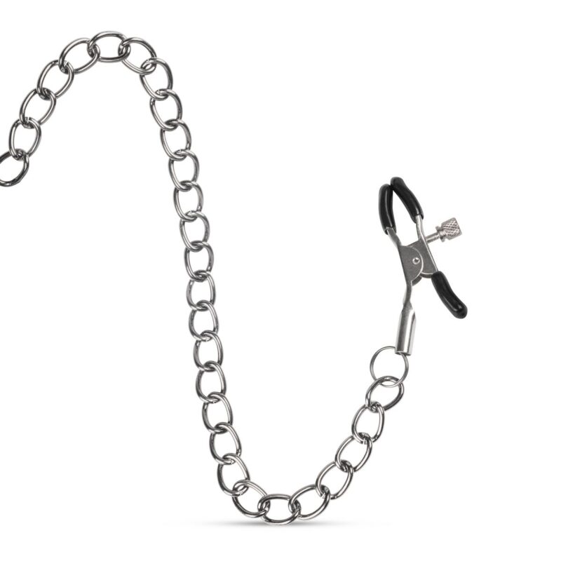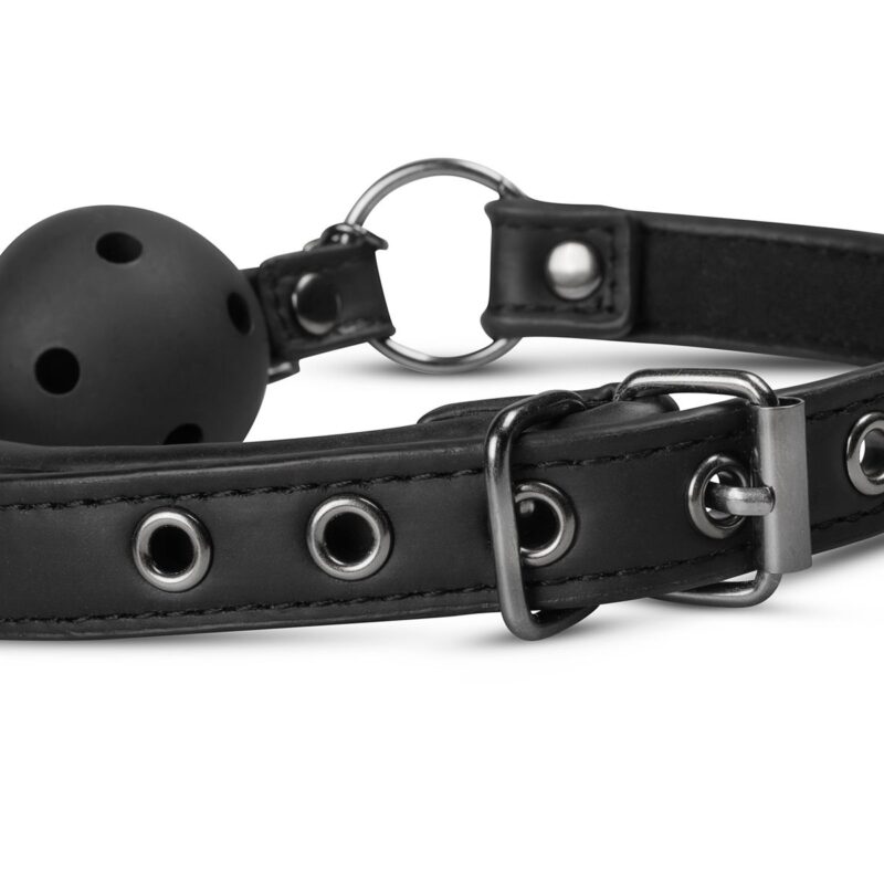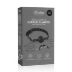 Ga op zoek naar het extreme met deze ballgag met tepelklemmen uit de EasyToys Fetish Collection. Deze zwarte ballgag is gemaakt van glad plastic. De bal is geur- en smaakloos en heeft luchtgaten. Hierdoor krijgt de drager voldoende lucht terwijl spreken onmogelijk wordt. De kunstleren band die achter het hoofd wordt gedragen is verstelbaar voor een perfecte pasvorm. Hieraan zitten de metalen tepelklemmen met kettingen. Ook de klemmen zijn verstelbaar voor een wisselende sensatie. diameter bal: 4,3 cm