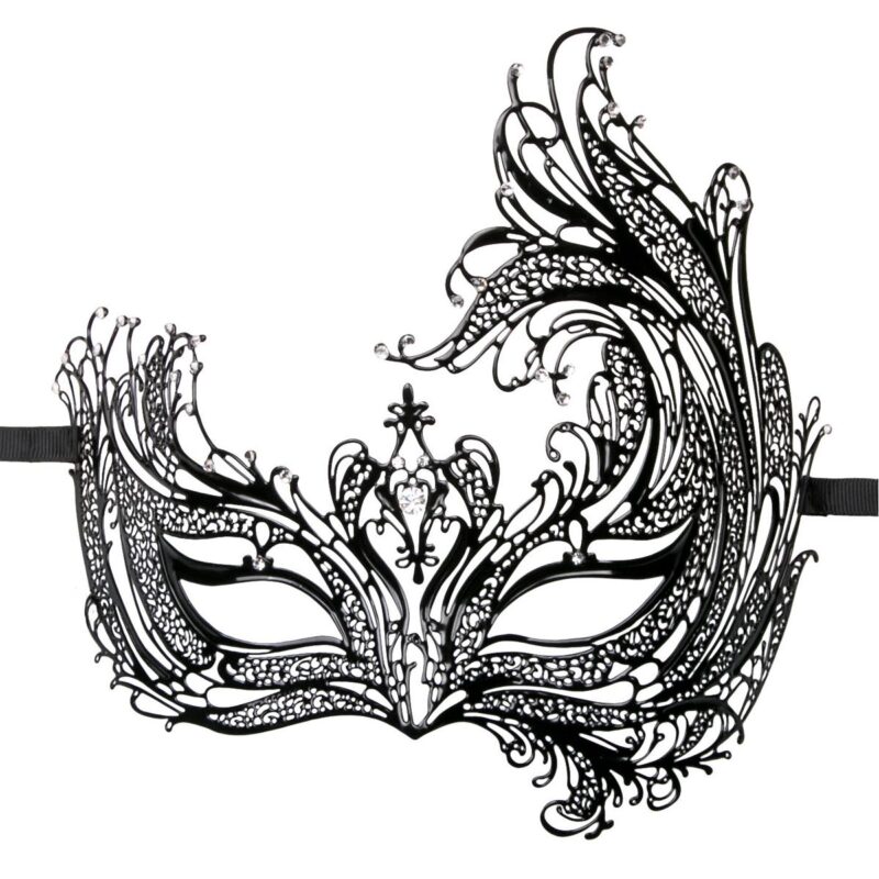 Dit zwarte open masker is niet alleen goed te combineren met een prachtige, glamour jurk. Maar je kunt hem ook goed combineren met een verleidelijk lingeriesetje, ga bijvoorbeeld voor een zwart lingeriesetje van kant en verleid je partner eens op een speciale manier! Dit masker heeft een asymmetrische vorm en is helemaal opengewerkt. Dit masker is heel sierlijk en is afgezet met prachtige diamantjes.