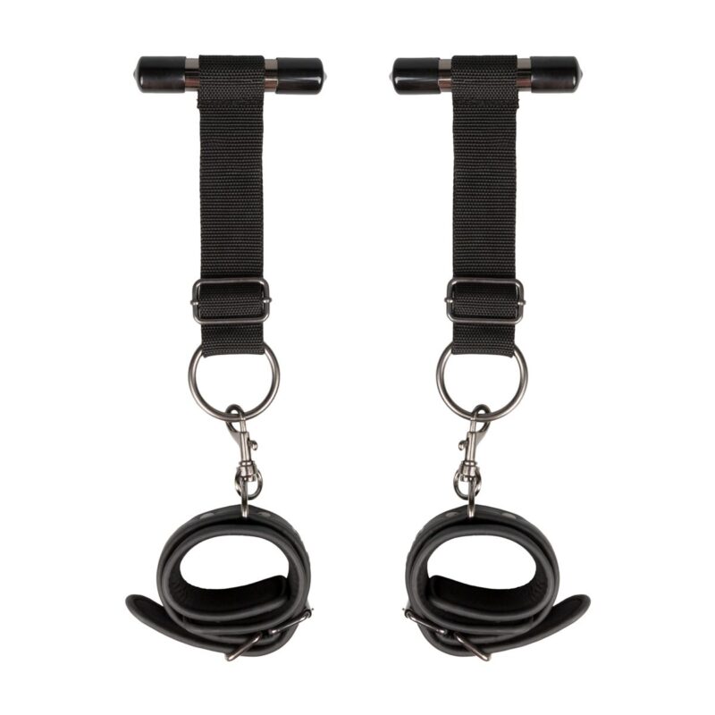 Als je nieuw of relatief nieuw bent in de wereld van bondage, dan zijn deze deurboeien het perfecte speeltje om je avontuur mee te beginnen. De boeien zijn makkelijk om te gebruiken. Het enige wat je moet doen is de metalen staven over de bovenkant van je deur te hangen en die dicht doen. Maak de polsen van je partner vast en hij of zij kan nergens naar toe. Deze handboeien kunnen overal gebruikt worden, als er maar een deur is die het gewicht kan houden. Perfect voor een spannend bondage-avontuur thuis of als je op vakantie bent. De boeien zijn verstelbaar en gemaakt van stevig en duurzaam kunstleer en gevoerd met schuimrubber.