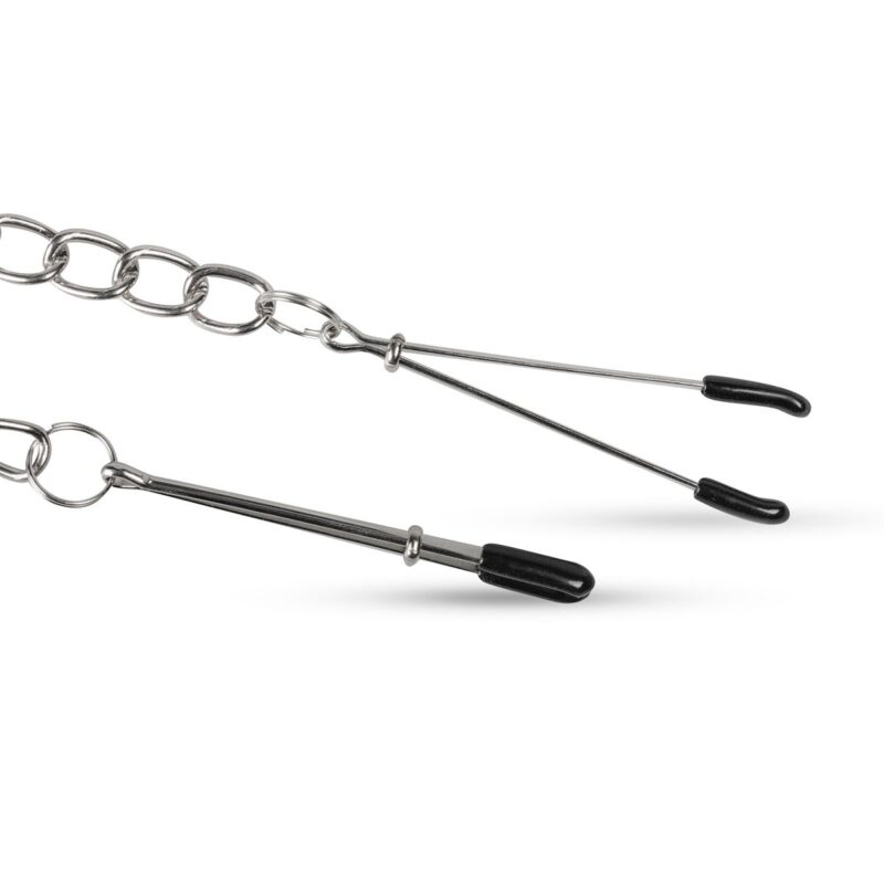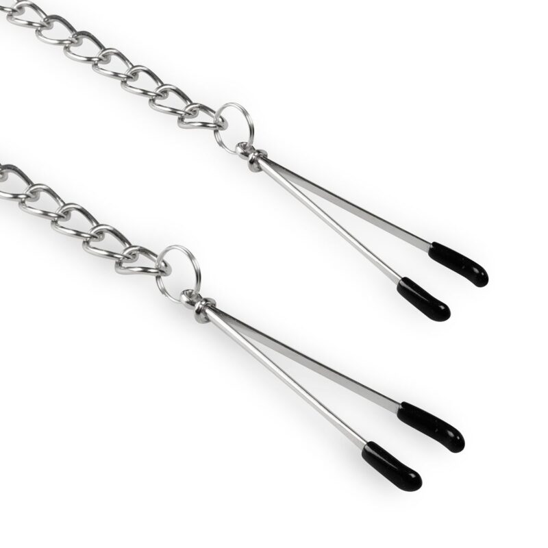 De pincet tepelklemmen zijn geschikt voor elke gebruiker. De klemmen zijn sterk, eenvoudig in gebruik en snel aan te passen aan al je wensen. Door de metalen ketting wordt er licht aan de tepels getrokken. Uiteraard kan dit je partner uitnodigen om voor meer sensatie te zorgen. Laat hem of haar aan de ketting trekken en ga samen voor een avond vol uitdaging.