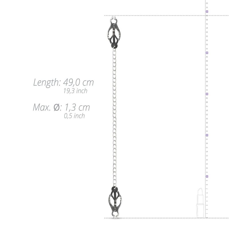 De metalen tepelklemmen van EasyToys grijpen je meest intieme zones. De vlinderklemmen zijn gemaakt van sterk metaal en hebben een zachte anti-slip top. De klemmen zijn voorzien van een metalen ketting voor extra sensatie tijdens het dragen. Het koude metaal en de intense knelling zorgen samen voor een onvergetelijke ervaring.