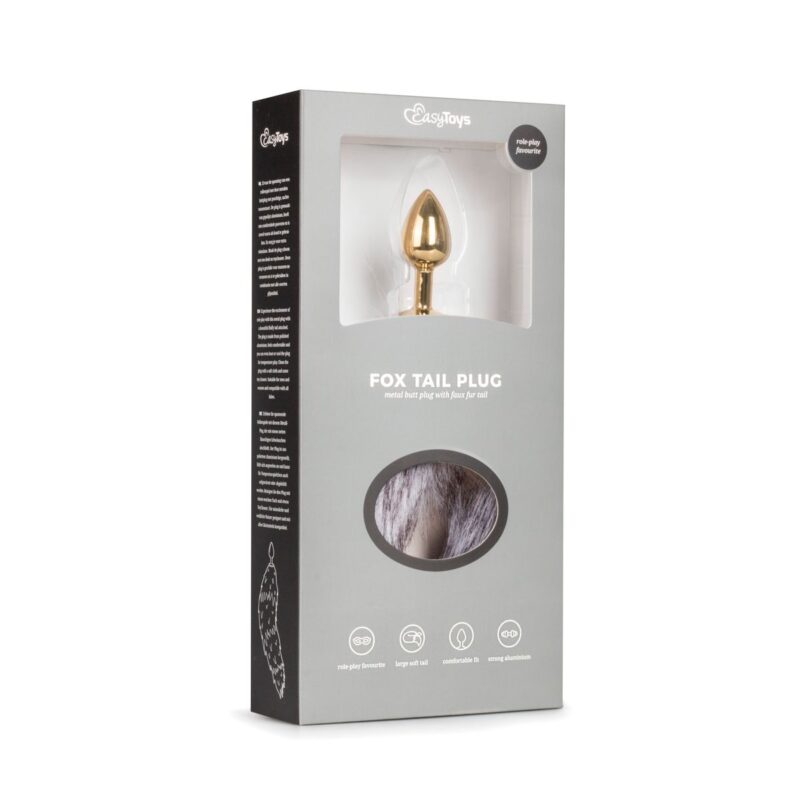 Opwindende, goudkleurige buttplug met bruine vossenstaart van EasyToys Fetish Collection. Dit kinky speeltje is klein van formaat waardoor hij zeer geschikt is voor beginners, maar ook de gevorderden kunnen hun plezier op. De gladde buttplug is van aluminium en heeft een prachtige staart aan het uiteinde. Hierdoor is ‘ie perfect voor pony play. Laat je partner op handen en voeten over de vloer sluipen. Het speeltje blijft zelfs tijdens de ruigste bewegingen goed op zijn plek zitten door de platte onderkant.