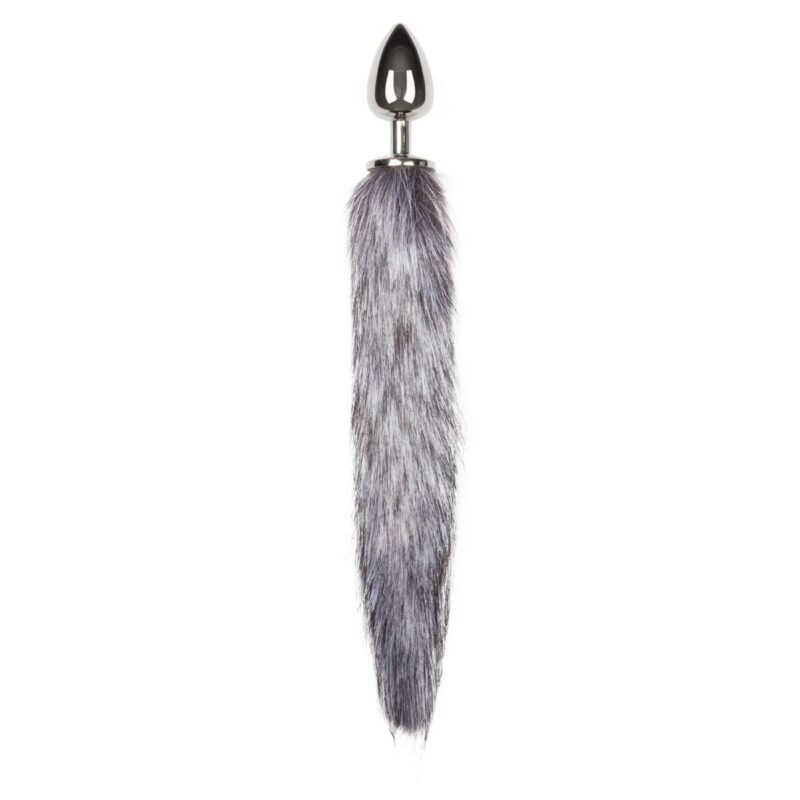 Kinky, zilverkleurige buttplug met grijze vossenstaart van EasyToys Fetish Collection. Dit grote speeltje zal zeker in de smaak vallen bij liefhebbers van anale stimulatie. De buttplug heeft een gladde en ronde top die jou heerlijk weet te stimuleren. Of breng de plug bij je partner in om het beest bij hem of haar naar boven te laten komen. De plug heeft een smalle hals en een platte voet waardoor hij zelfs bij de wildste bewegingen blijft zitten.