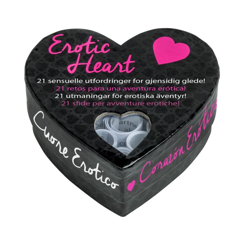 Ontdek een nieuwe dimensie van samenzijn met het Erotic Heart – een romantisch hartvormig doosje gevuld met 21 verleidelijke uitdagingen die zorgen voor speelse spanning en sensuele verrassing. Met zijn compacte formaat van minder dan 7,5 cm neem je dit kleine hartje overal gemakkelijk mee naartoe: verstop het onder een kussen, neem het mee op een picknick, of tover het tevoorschijn bij een glas wijn of tijdens een intiem diner.