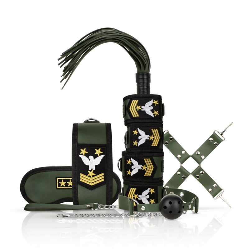 Maak je klaar om te marcheren naar een wereld van verleidelijke discipline met het Field Marshal’s Fetish Kit! Dit 8-delige arsenaal is jouw ultieme tool voor militair gethematiseerd SM-spel. Ontworpen voor degenen die graag de leiding nemen—of zich eraan overgeven—heeft deze set alles wat je nodig hebt om strikte bevelen af te dwingen. Leid de aanval met de flogger en de ball gag, en zorg ervoor dat je partner in het gareel blijft met het restrainingsmateriaal. Blinddoek ze om de spanning te verhogen, en neem ze aan de lijn voor totale overheersing. Of je nu de bevelvoerende officier bent of de gehoorzame rekruut, deze set is jouw ticket om de intense sensaties van een militair rollenspel te verkennen.