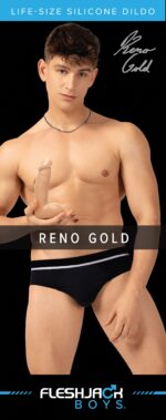 Laat je verwennen door Reno Gold, een heerlijke dildo die gemodelleerd is naar de bekende pornoster. De Fleshjack Boys serie staat bekend om zijn realistische vormgeving. De dildo is gemaakt van SuperSkin, een lichaamsveilig siliconen dat enorm zacht en comfortabel aanvoelt. Groot voordeel is dat dit materiaal snel op temperatuur is. Deze dildo heeft een harde kern zodat hij ook goed geschikt is om als voorbinddildo te gebruiken. Dankzij de realistische eikel, geaderde schacht en balzak kun je genieten van een levensechte ervaring.