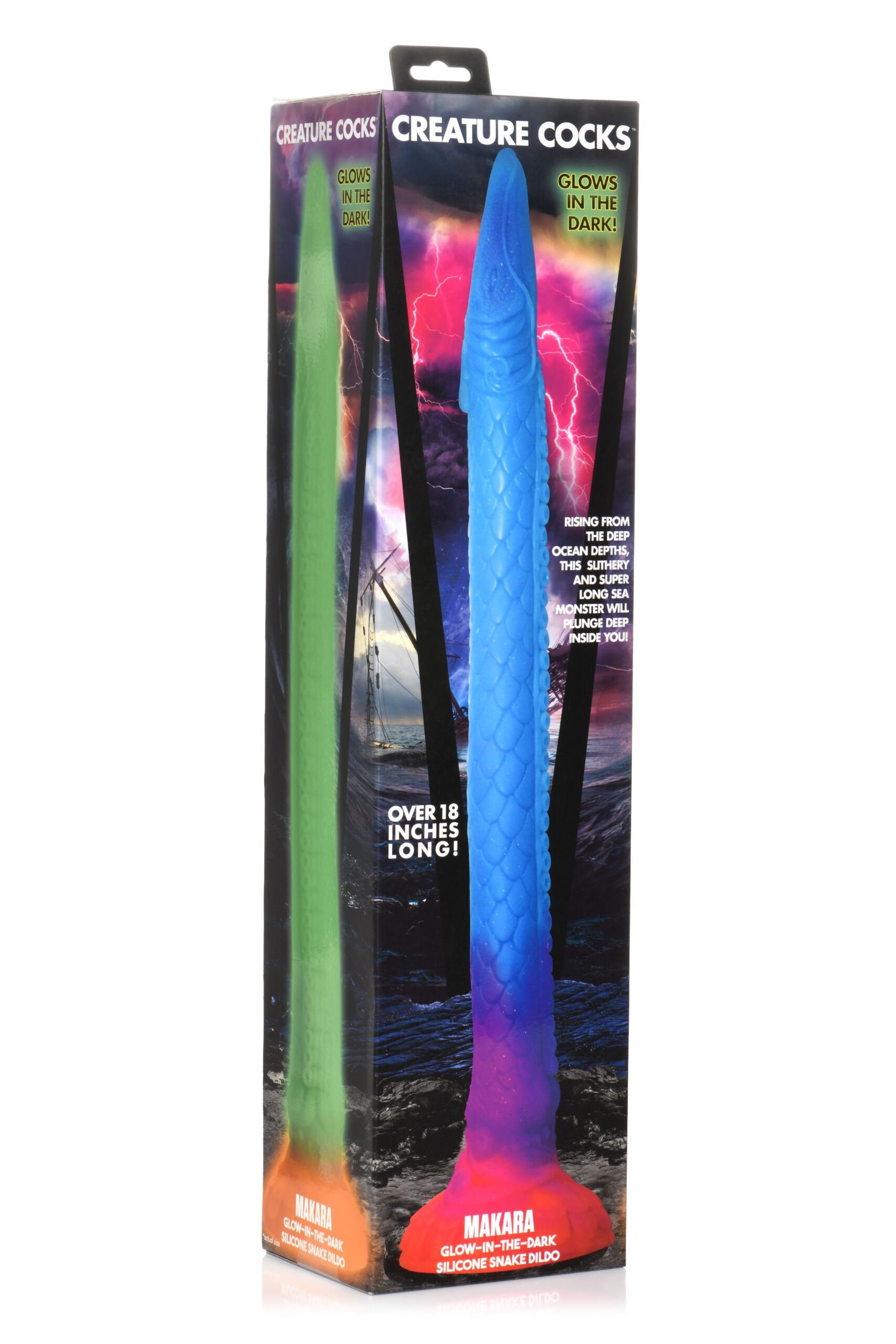 Geniet solo of samen van de ultieme anale stimulatie met deze Glow-in-the-dark Dragon dildo! De dildo is maar liefst 46,3 cm lang en voorzien van een uniek design en structuur. Verreik je kinky cosplay of laat de fantasieën van jou of je partner tot leven komen. De Dragon is voorzien van een stevige zuignap waardoor je hem ook perfect handsfree kunt gebruiken. Het materiaal is van lichaamsveilig siliconen en bij blootstelling aan zonlicht heeft hij licht in het donker. Gebruik een glijmiddel op waterbasis en geniet van de lengte en sensatie van deze unieke anaal dildo.