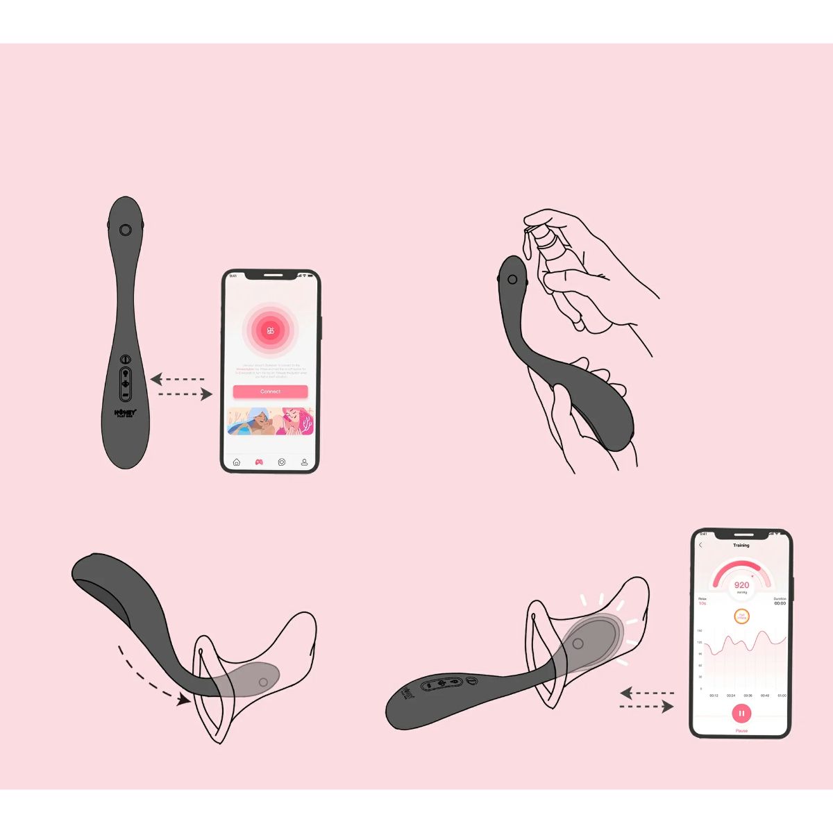 Via de gebruiksvriendelijke app krijg je direct inzicht in je knijpkracht en voortgang. Je koppelt de trainer met één druk op de knop, volgt een korte meting en ziet meteen hoe je bekkenbodem reageert. Vervolgens begeleiden korte sessies je stap voor stap, zodat je op een laagdrempelige manier aan jouw doelen kunt werken, waar en wanneer het jou uitkomt.