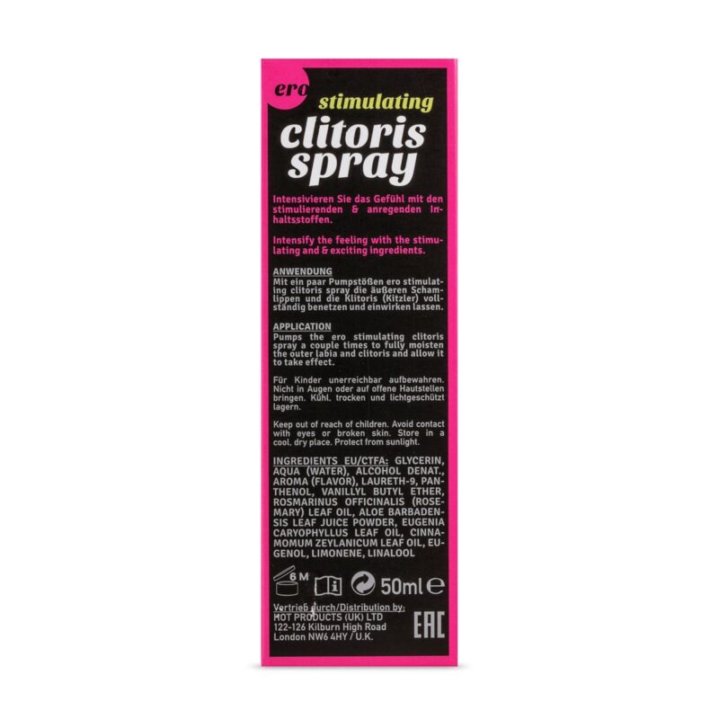 Stimulerende spray voor de clitoris! Deze spray zorgt ervoor dat de clitoris extra geprikkeld en gevoelig wordt. Verstuif net voor de seks een beetje spray op de clitoris en je merkt gelijk het stimulerende effect. Een heerlijk hoogtepunt is nu gemakkelijk te bereiken. Ook prima te gebruiken tijdens de daad om een tweede orgasme te vergemakkelijken.