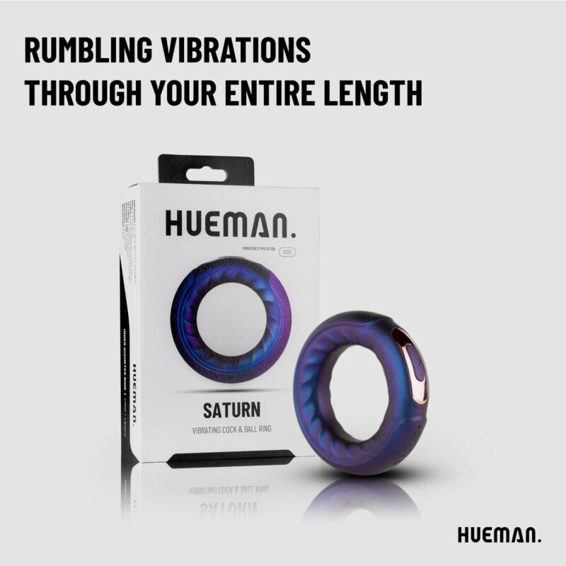 Geniet van een langdurige erectie en intense stimulatie met de Saturn cock- en balring uit de Hueman collectie. De ring beperkt het bloedtoevoer, waardoor de penis en ballen extra gevoelig worden en de erectie harder aanvoelt en langer aanhoudt. Hij is voorzien van 10 verschillende vibratiestanden, waarvan 3 snelheden en 7 patronen. Deze zijn eenvoudig in te stellen met de knop op de ring. De ring is niet flexibel, maar heeft een zachte siliconen coating voor comfortabel gebruik. De ring is volledig waterproof zodat je hem overal kunt gebruiken, zelfs in bad of onder de douche. Ook is hij eenvoudig en snel op de laden met de bijgeleverde USB-kabel. Maak de ring na gebruik schoon met toycleaner en lauwwarm water.