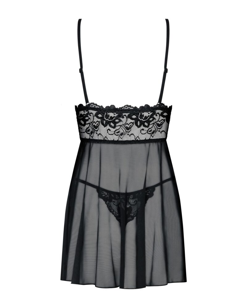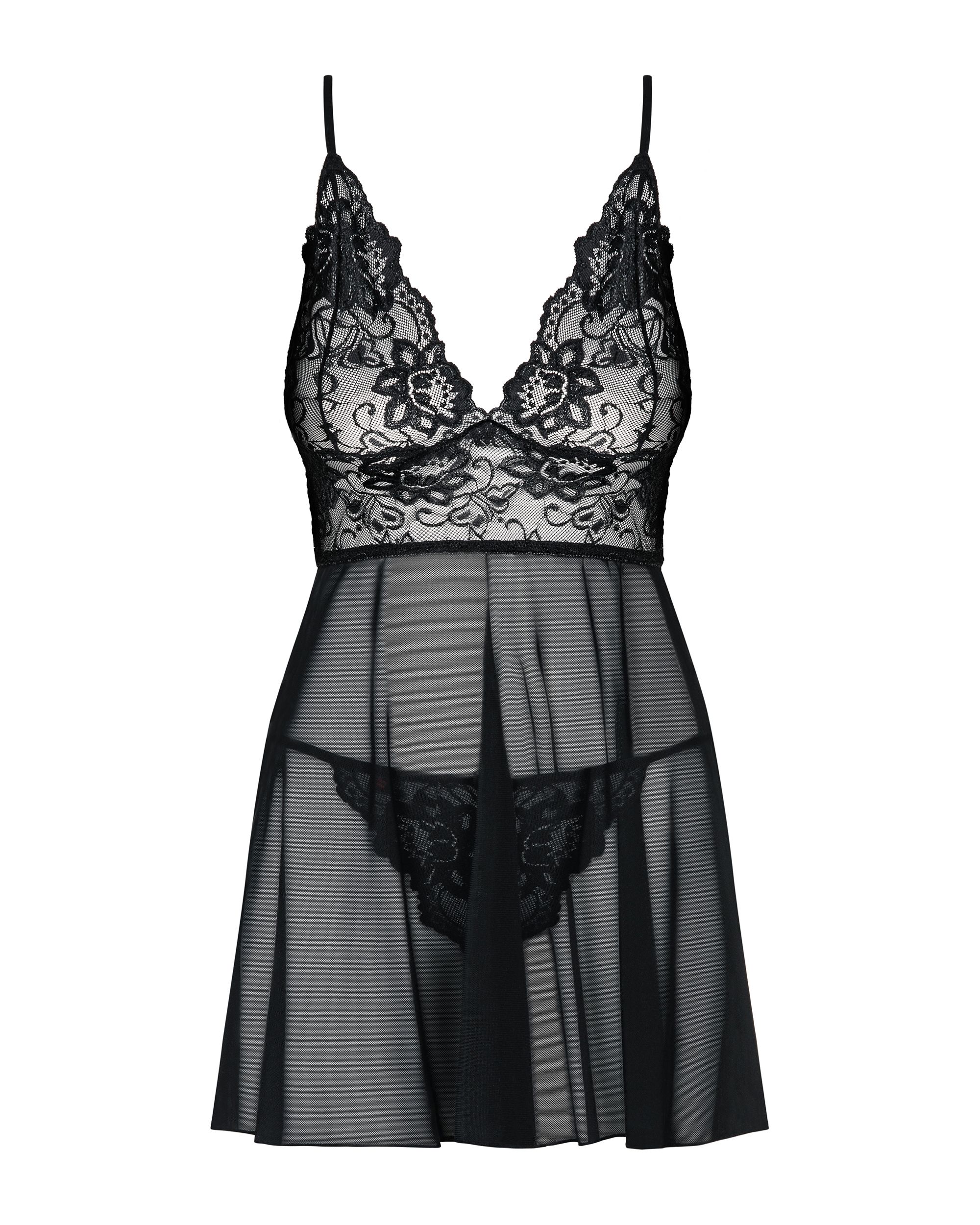 Merk: Obsessive. Deze babydoll is zeer elegant en romantisch, hij is gemaakt van een delicaat en rekbaar materiaal en heeft bloemmotieven op de top die hem nog meer doen opvallen. Door de verstelbare bandjes sluit de babydoll perfect aan. De onderzijde is doorschijnend voor een sexy en gedurfde look.