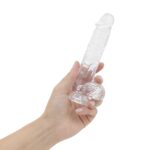 Als je een realistisch gevoel wilt tijdens je sessie, zorg er dan voor dat je deze dildo aan je speelgoedcollectie toevoegt. Terwijl hij alle gewenste kenmerken van een echte penis heeft, zoals een geaderde schacht, een opvallende top en ballen, is de dildo gemaakt van helder jelly, wat hem absoluut esthetisch maakt! De zuignap hecht aan verschillende oppervlakken, waardoor je vrijheid hebt en veel mogelijkheden voor creativiteit.